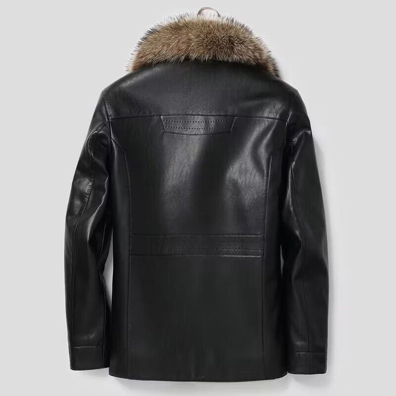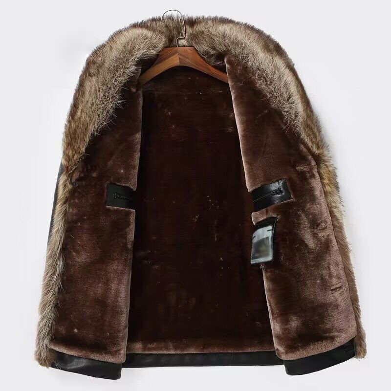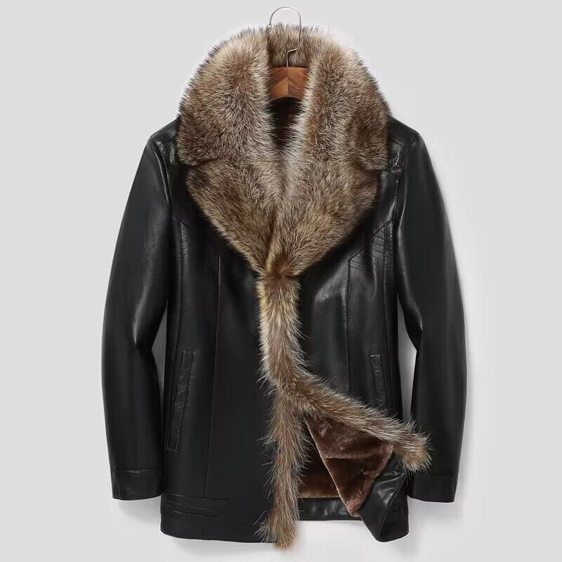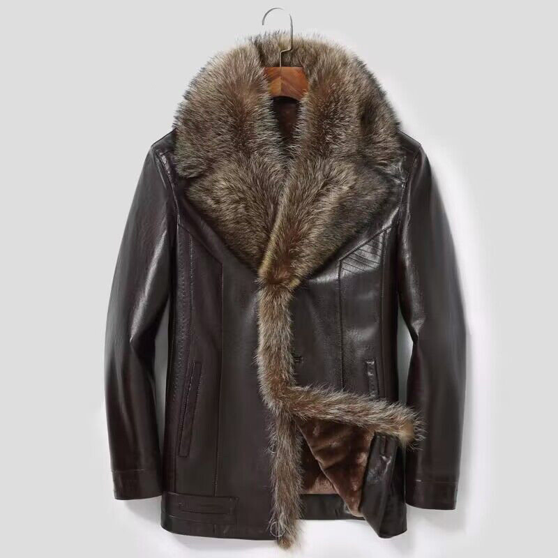 📚 海宁真皮皮衣男短款貉子毛领西装领皮毛一体皮大衣男皮夹克外套