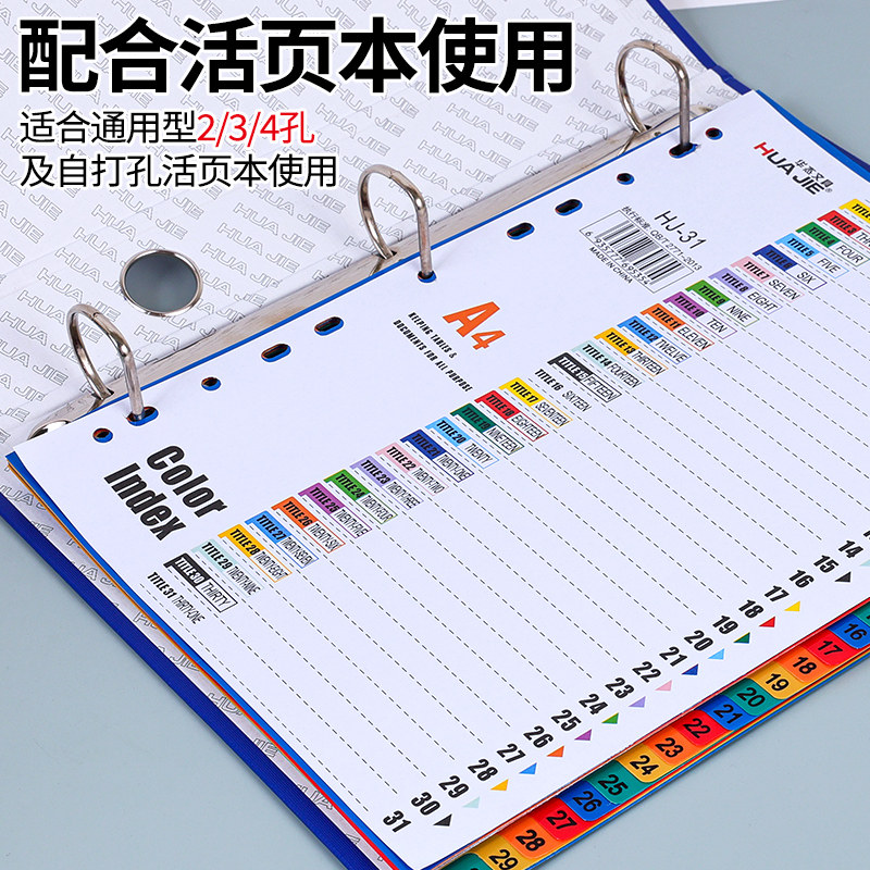 📚 A4隔页纸彩色文件分页纸活页分类纸分隔纸办公用品分页索引纸5页/10页/12页/21页/31页