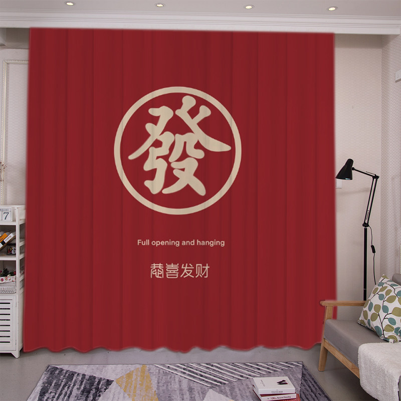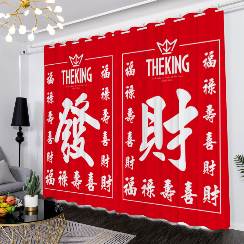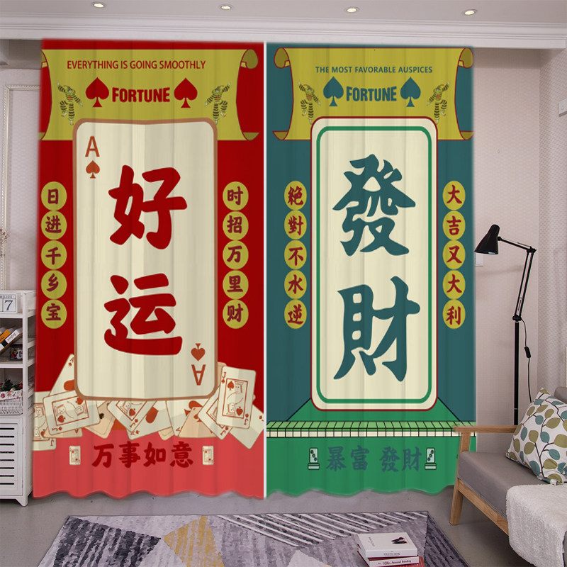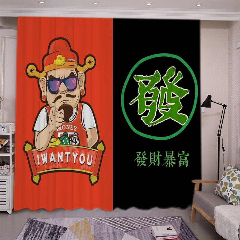 📚 卡通开运财神發财装饰遮光窗帘定制卧室隔断客厅麻将馆棋牌室背景