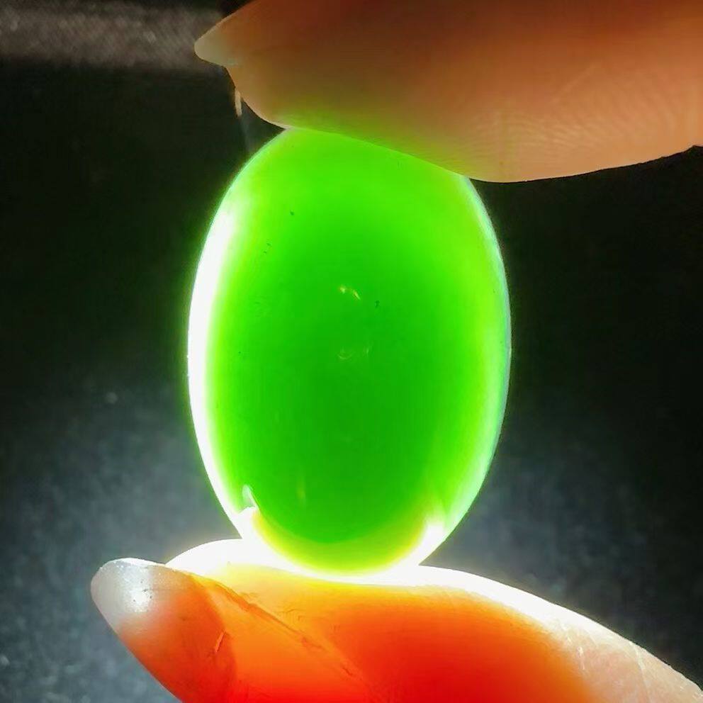 📚 缅甸墨翠龙石种鸽子蛋蛋面 玻璃种高冰种翡翠戒面