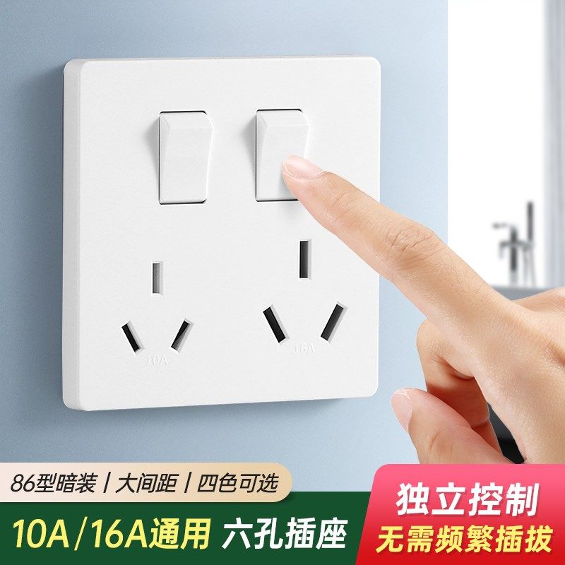 📚 二开六孔插座86型厨房专用带开关两三孔空调热水器10孔插座面板