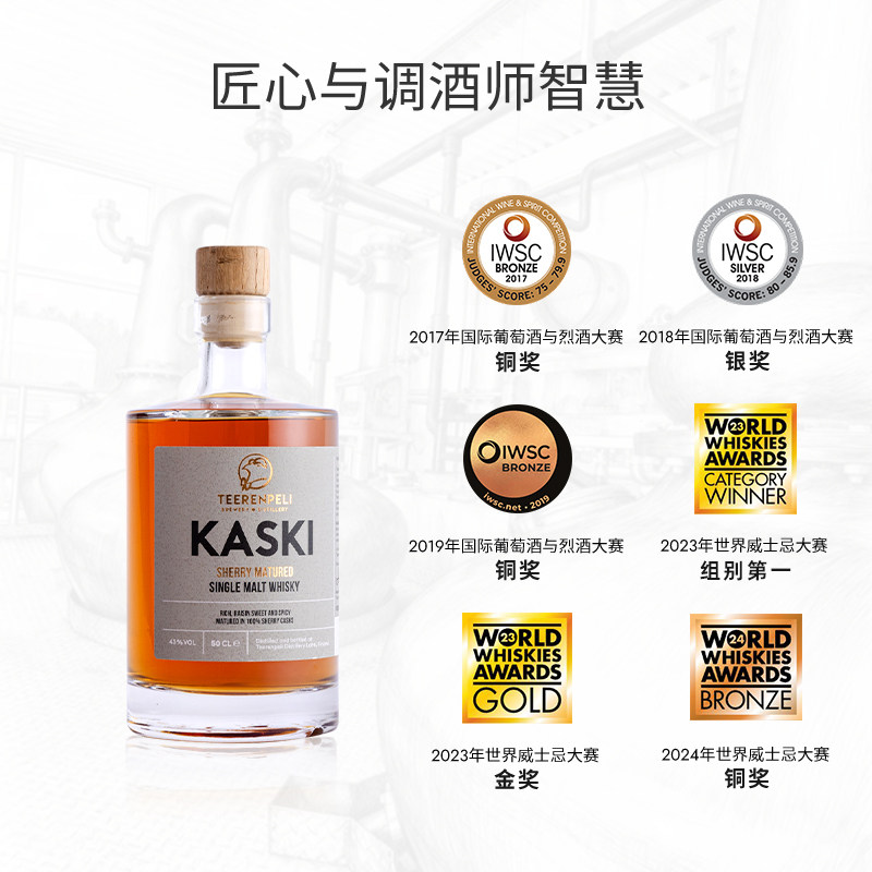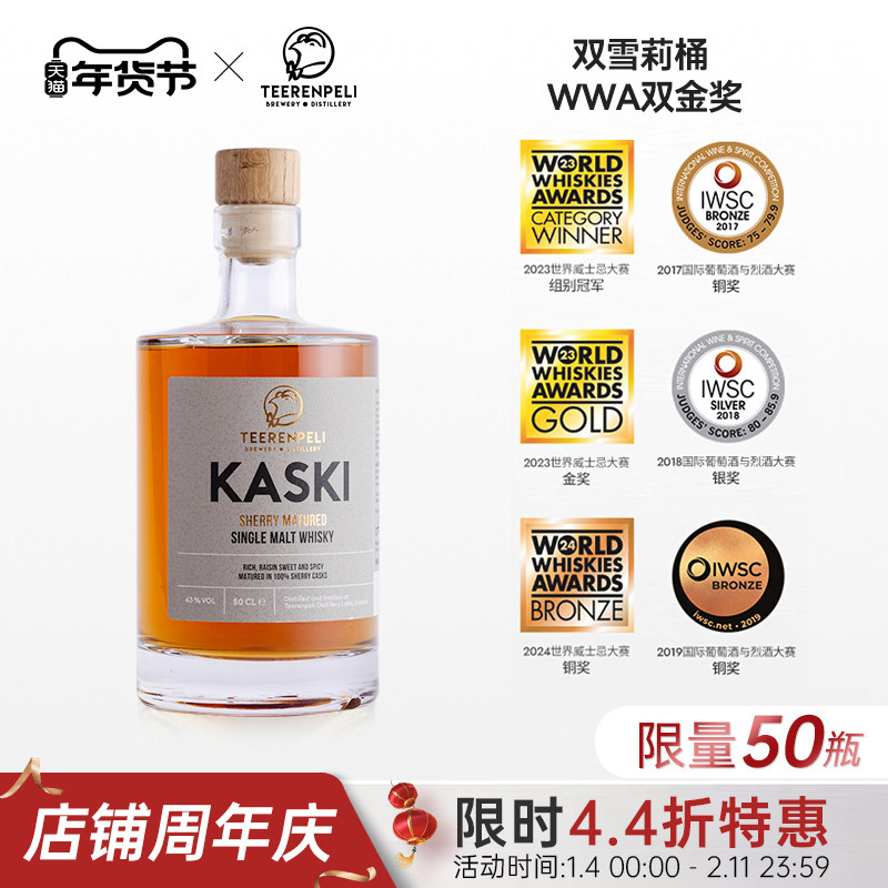 📚 Teerenpeli特伦佩利芬兰威士忌雪莉桶KASKI单一麦芽进口洋酒500ML