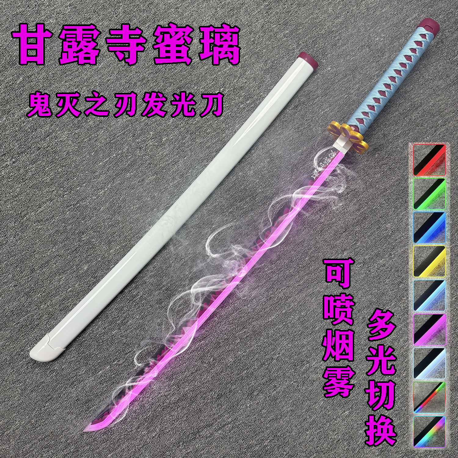 📚 烟雾甘露寺蜜璃木刀鬼灭之刃日轮刀喷雾发光刀动漫cos道具玩具刀