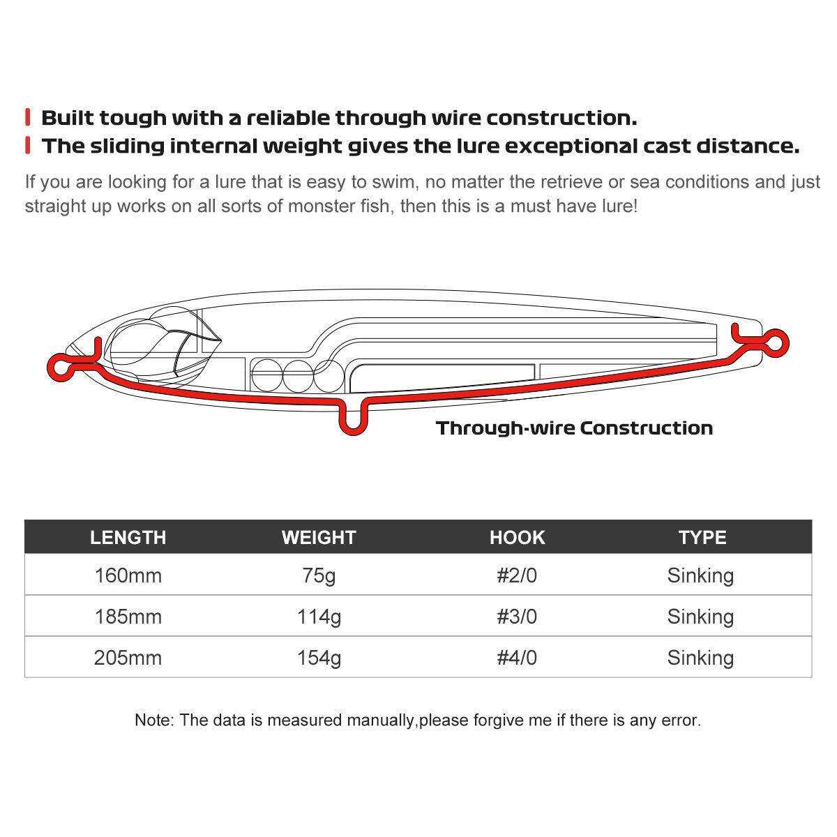 📚 NOEBY诺比新路亚硬饵长条颤沉铅笔饵大克重远投海钓船钓假饵全套