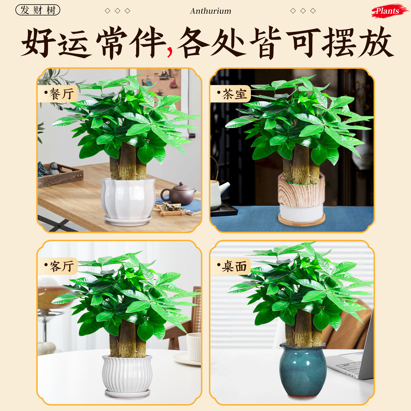 📚 发财树盆栽花卉绿植物室内客厅盆栽大招财中式金钱树小盆栽盆景