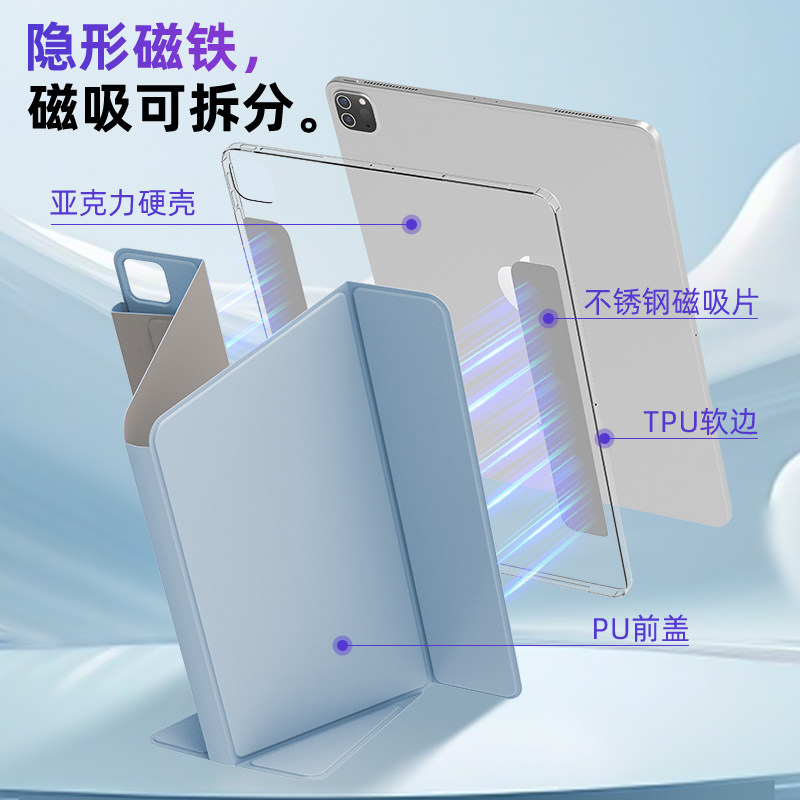 📚 mousmore适用2025款M4苹果ipadpro 11寸13平板防摔air7/6/5弯保护壳书本式12.9磁吸可分体10.9透明10.2横竖套