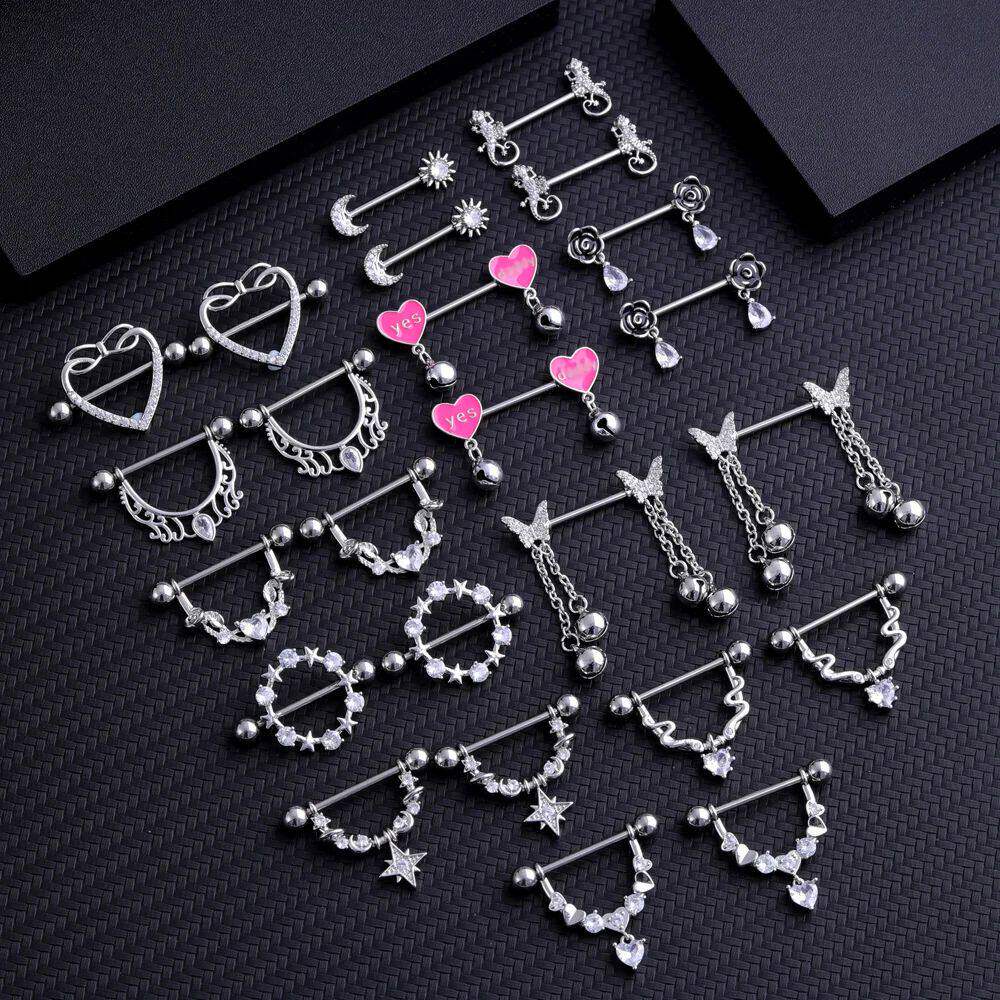 📚 pcs Titanium Ushaped Dangle Nipple Piercings Barbell