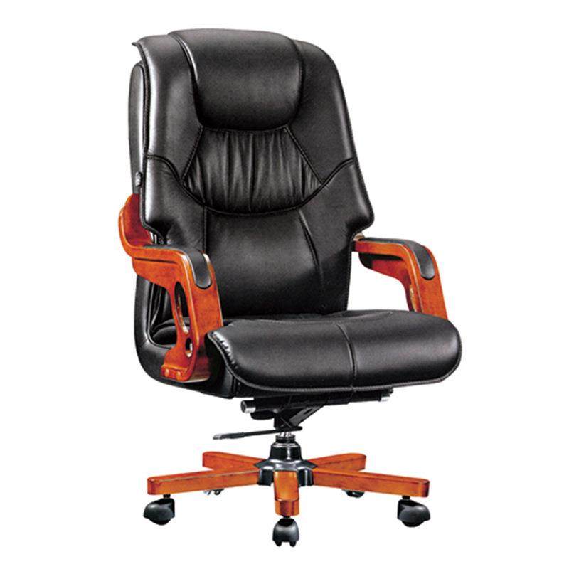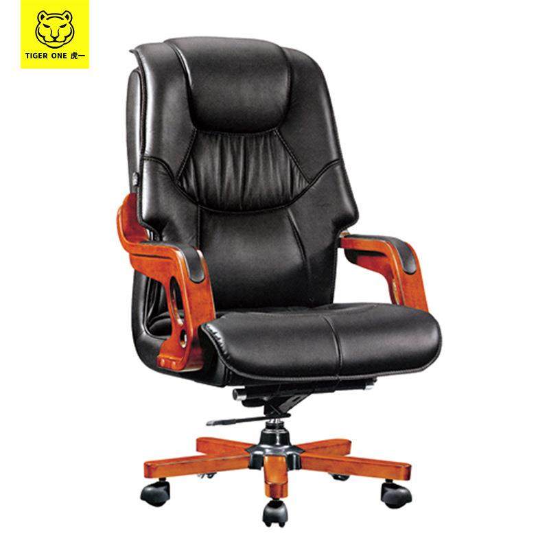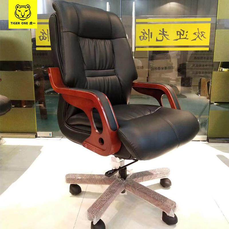 📚 虎一办公家具实木架子大班台椅旋转可躺老板椅子电脑椅黑色西皮质