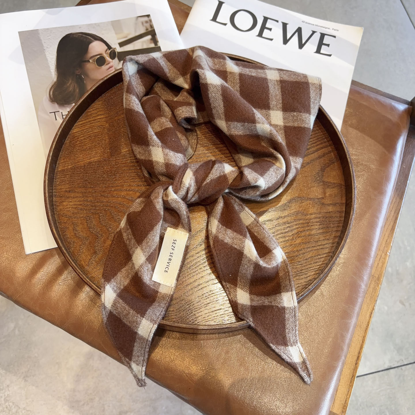 📚 春秋冬格子菱形小领巾围巾女韩版百搭装饰围巾头巾薄款护颈小围脖