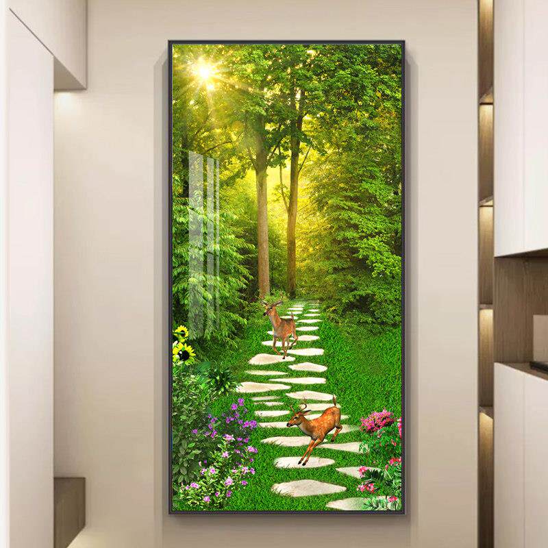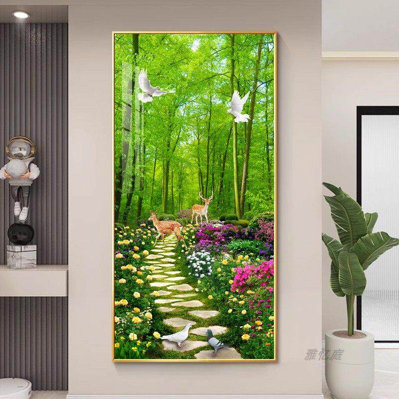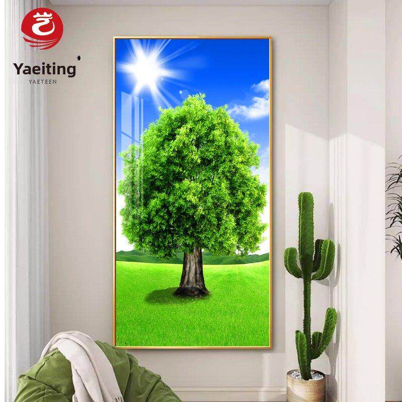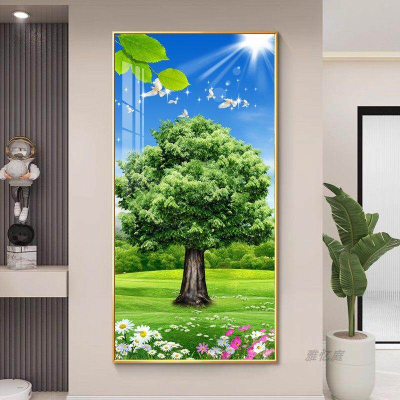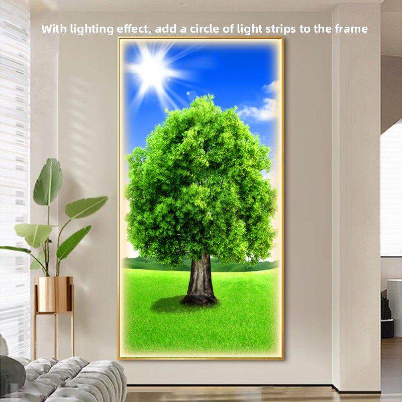 📚 绿色大树玄关装饰画带灯现代简约入户走廊过道挂画墙画树木风景画