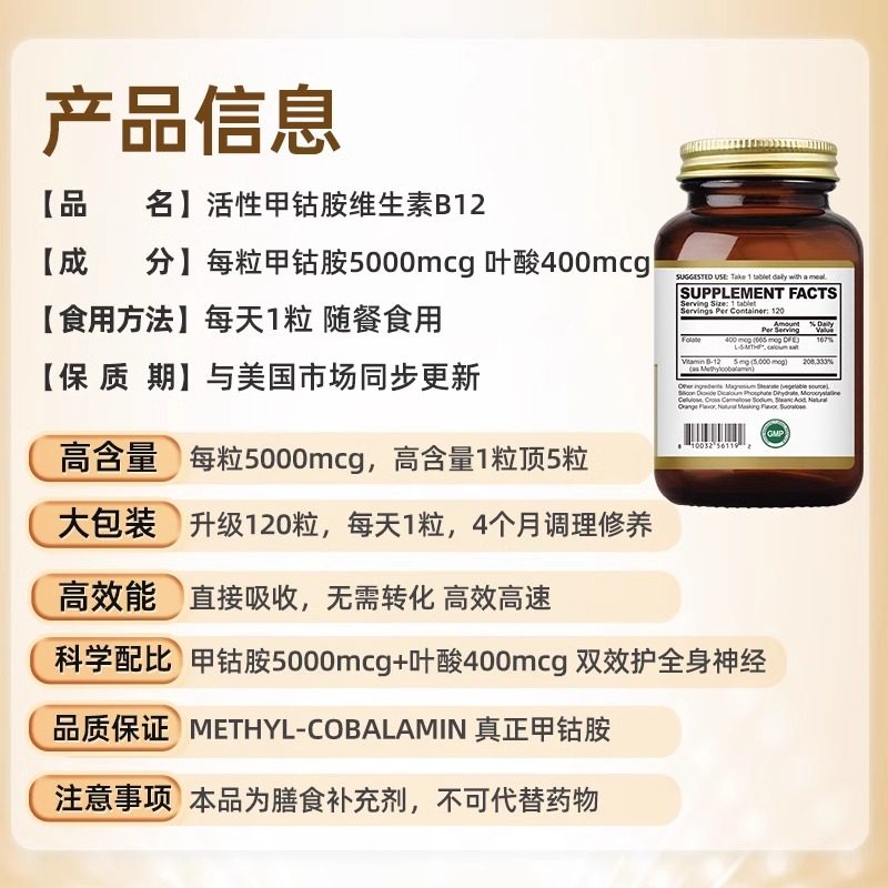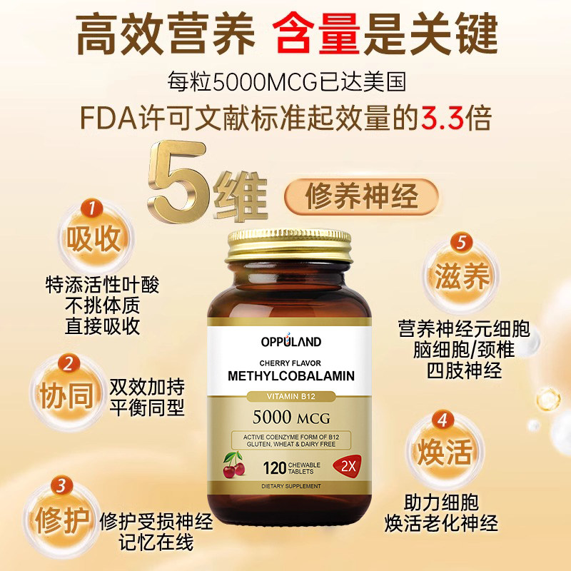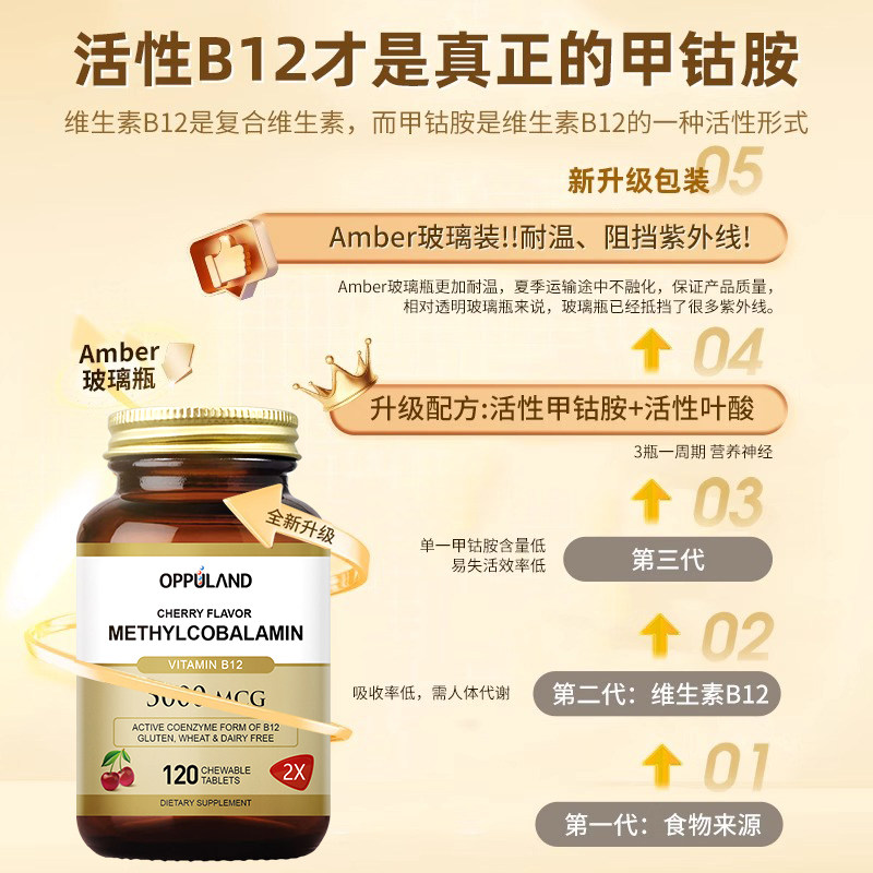 📚 Oppuland甲钴胺营养修复神经b12维生素B族活性叶酸正品官方旗舰店