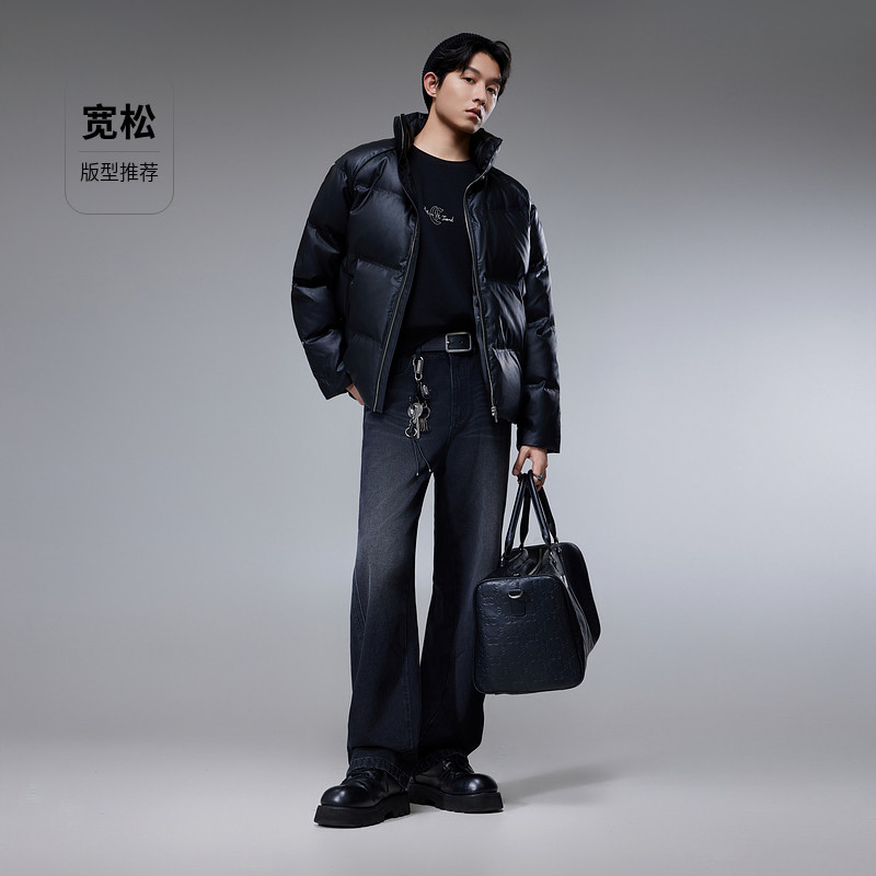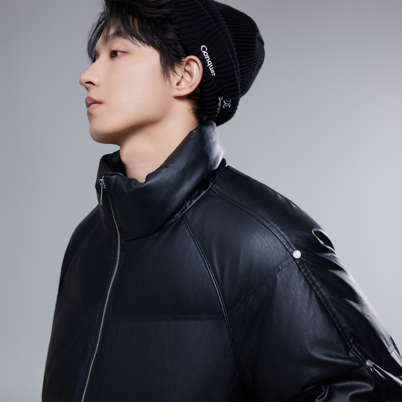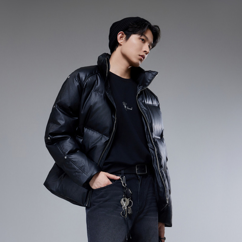 📚 【皱感PU】卡宾时尚面包服短款羽绒服男2025冬季新款立领防寒外套