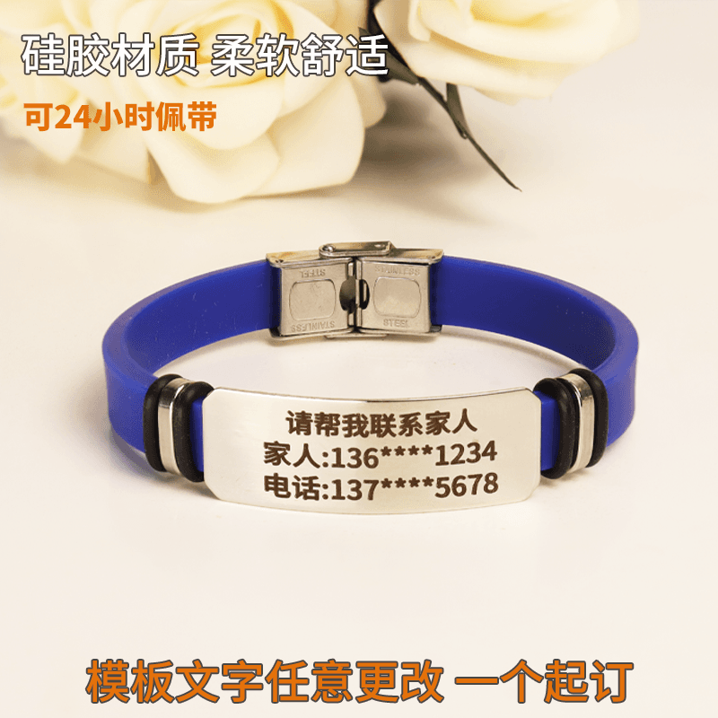 📚 老人防走失手环儿童防走失定制信息卡老年痴呆防丢神器身份牌