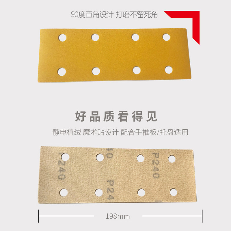 📚 长方形砂纸8孔干磨砂纸砂皮打磨植绒黄砂抛光板70*198多孔砂纸