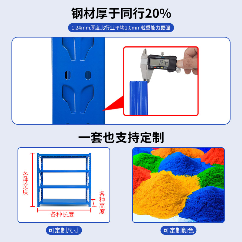 📚 深100cm加宽货架一米五布匹布料仓库置物架子多层1米25三立柱重型