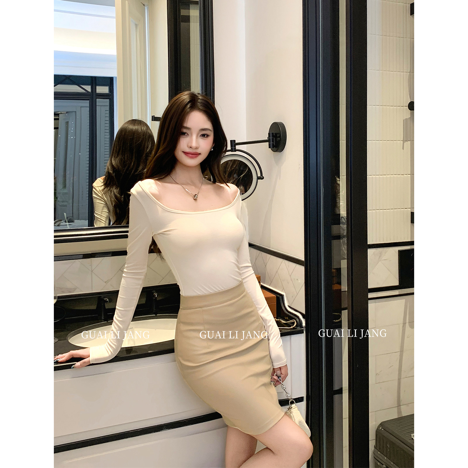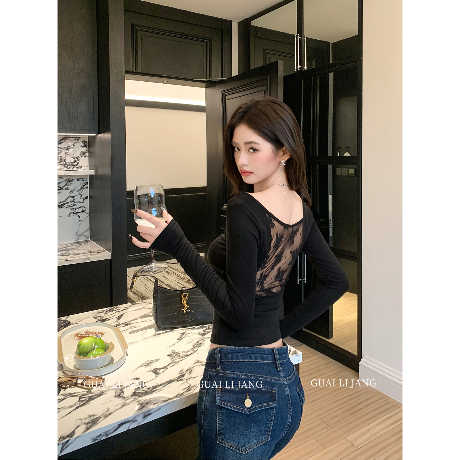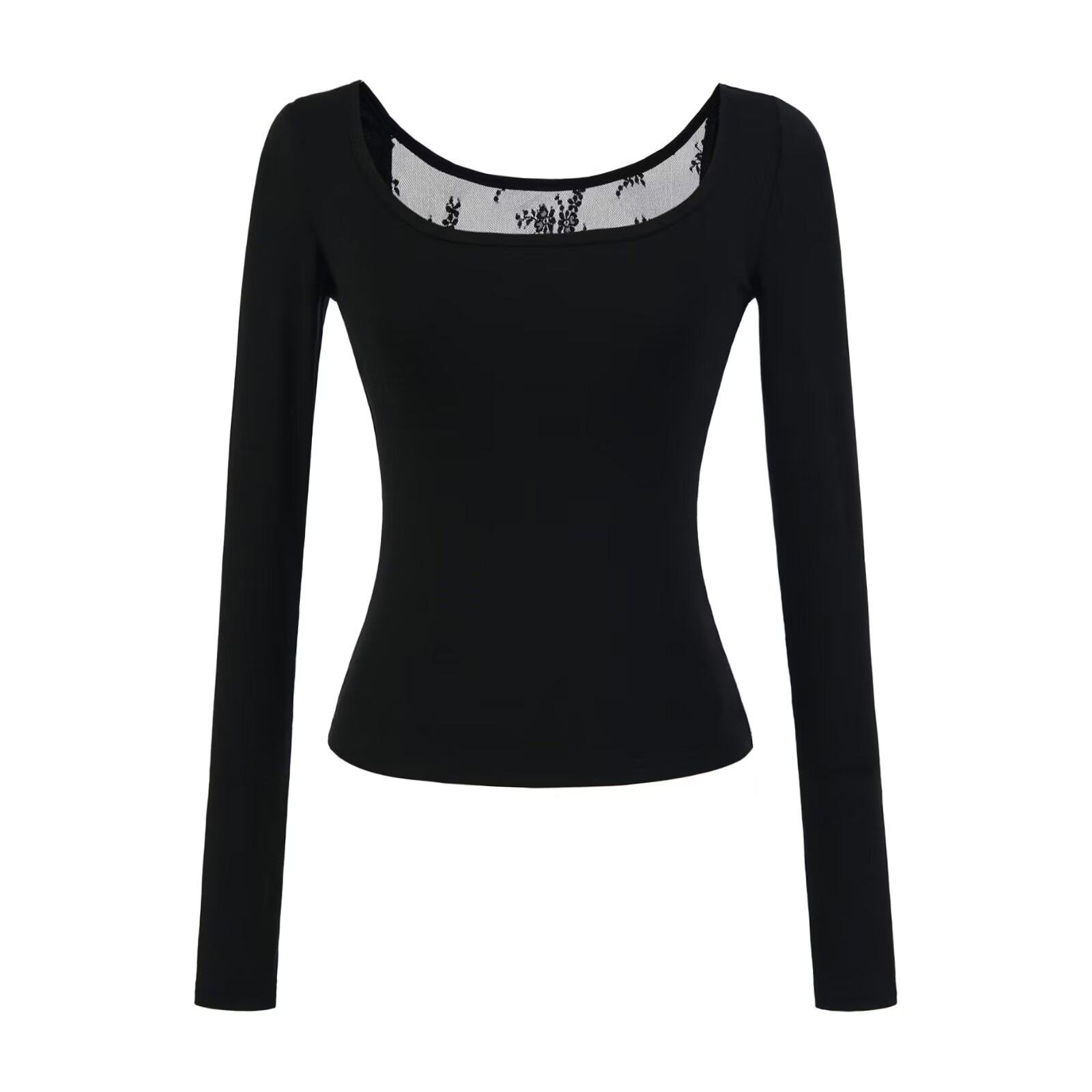 📚 怪力酱 天丝U领美背蕾丝打底衫女春季设计感修身收腰微透内搭上衣