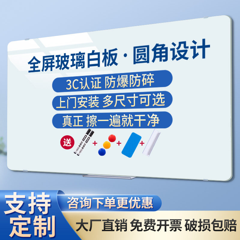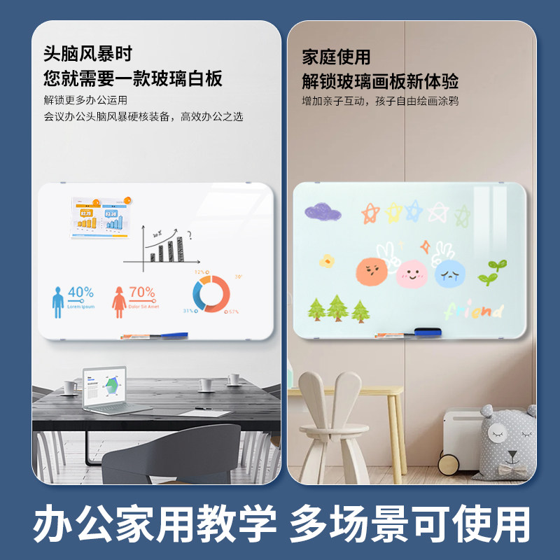 #圆角磁性钢化玻璃 #写字板 #办公会议室 #可擦写 #磁吸展示板 #挂墙式小黑板 #家用教学 #儿童画板墙贴 #笔记记事板