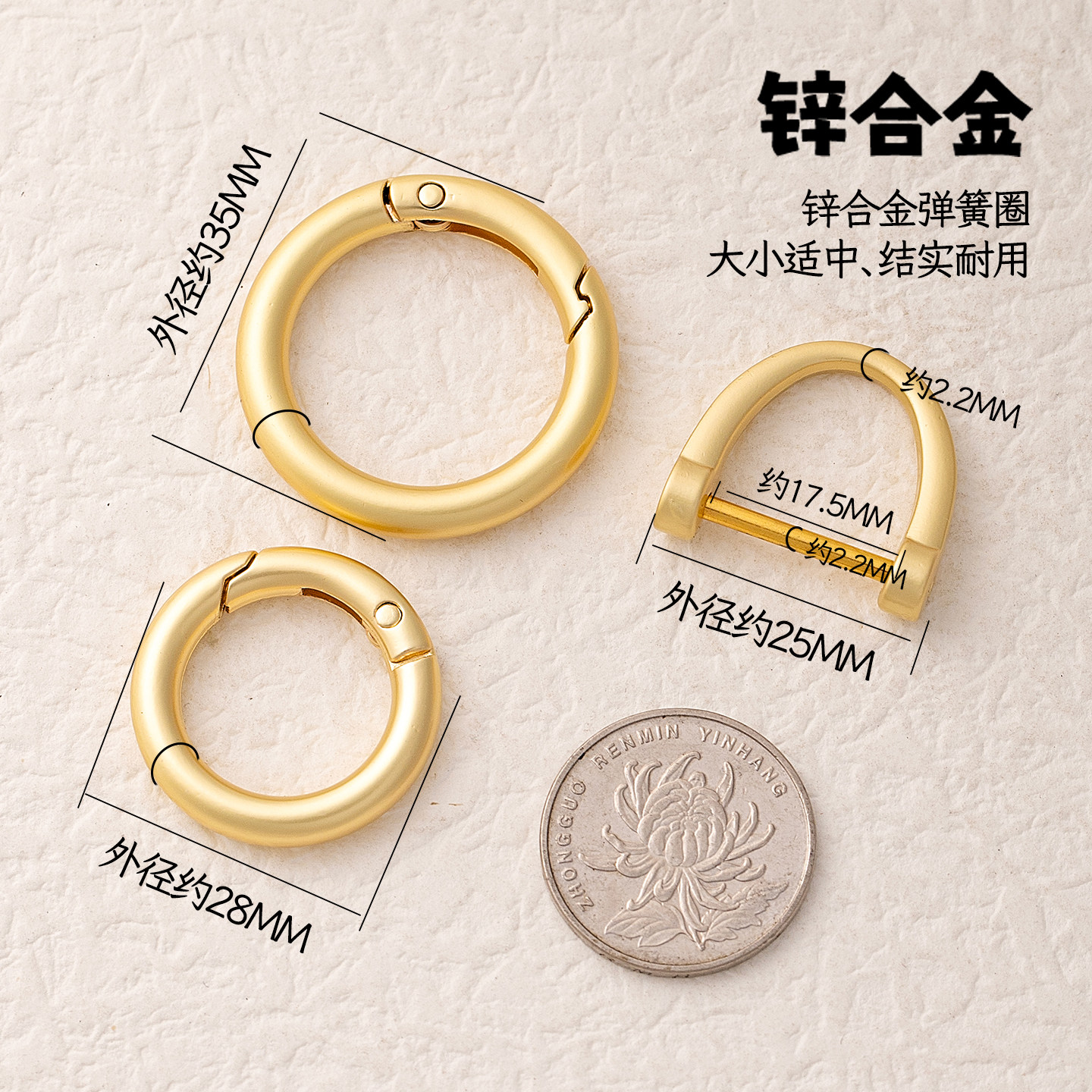 📚 金属马蹄扣汽车D字扣小挂件防丢绳高级弹簧圈包包圆形扣环挂娃娃