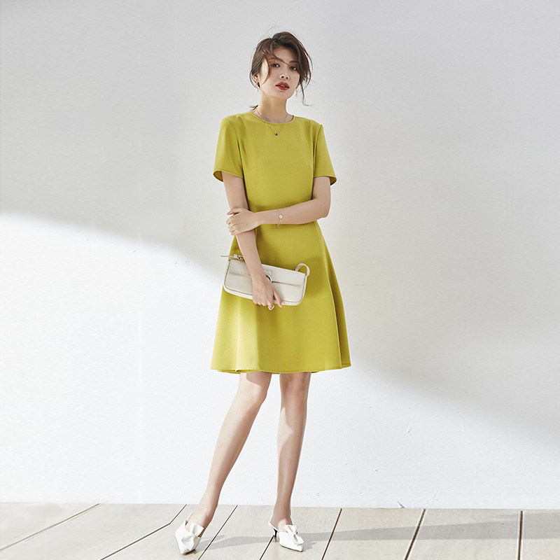📚 赫本风黑色裙子女夏季显瘦黄色小个子正式场合A字连衣裙气质收腰