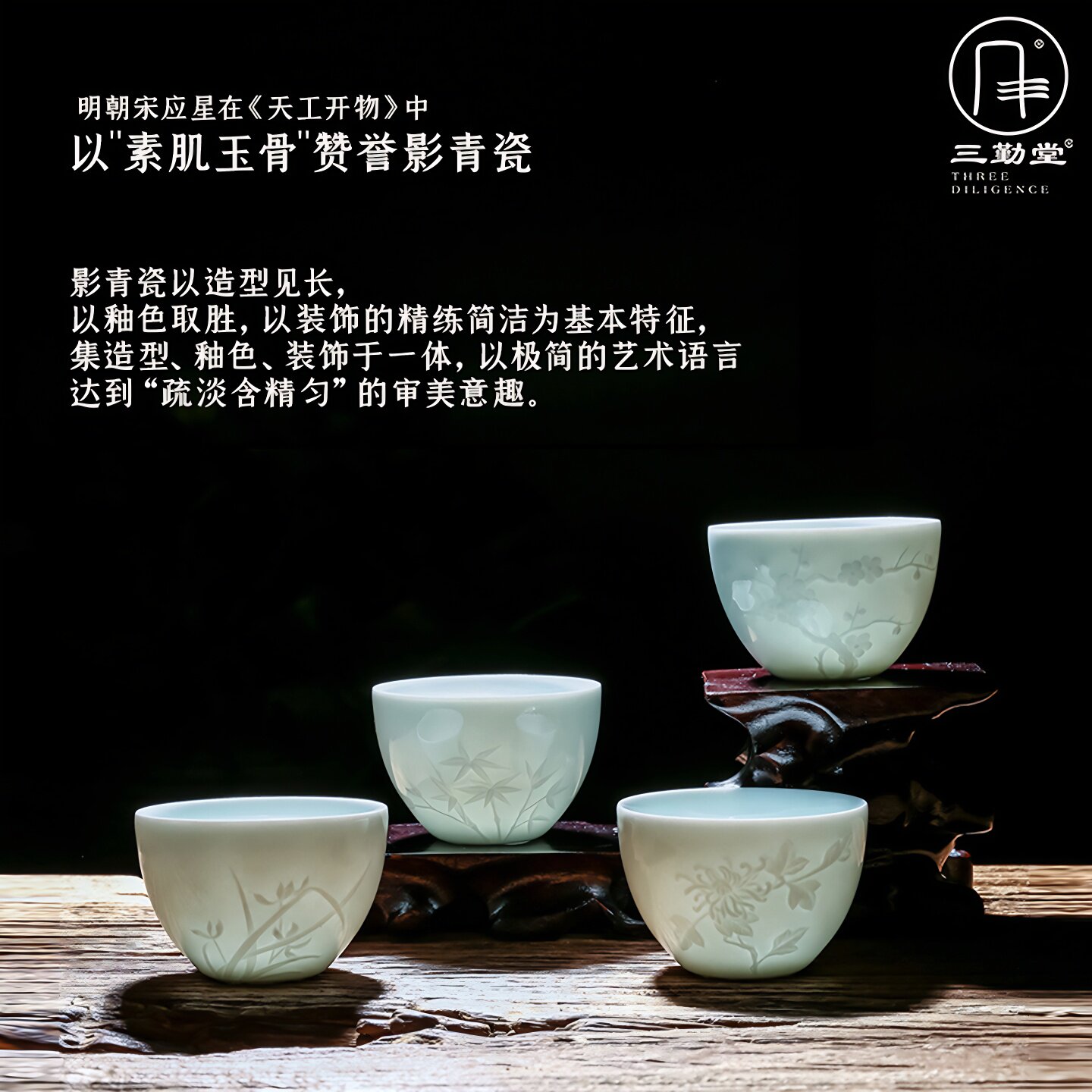 📚 三勤堂茶具道主人杯女单杯影青陶瓷品茗杯景德镇功夫茶具个人专用