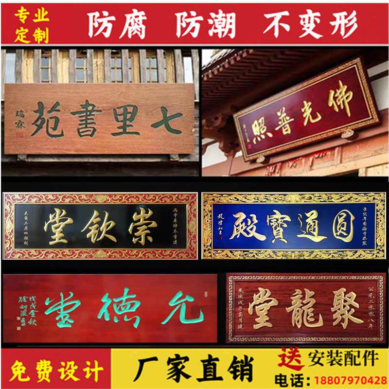 📚 实木牌匾定做仿古木质招牌店铺开业门头定制祠堂寺庙中堂东阳木雕