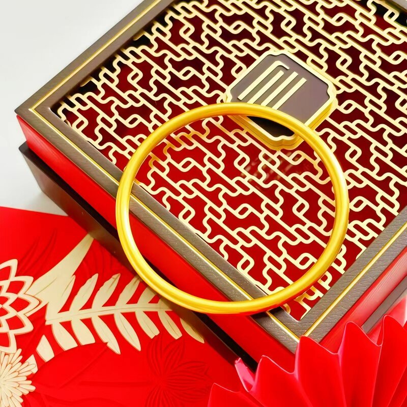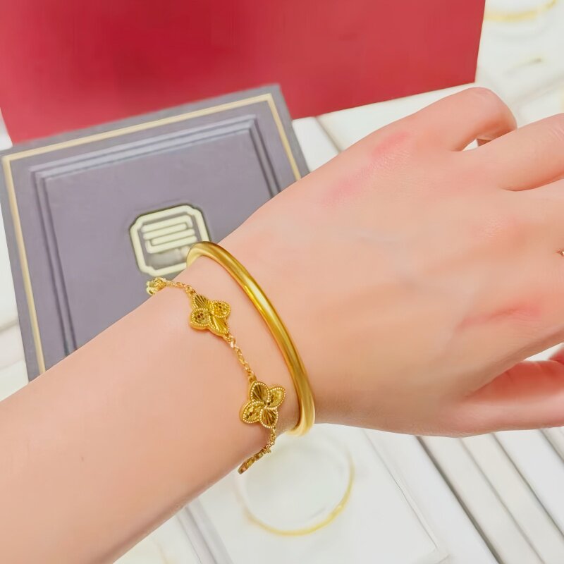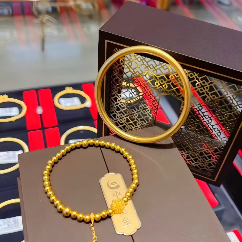 📚 正品9999足金包银古法传承黄金手镯素圈镯子女实心水贝手环送女友