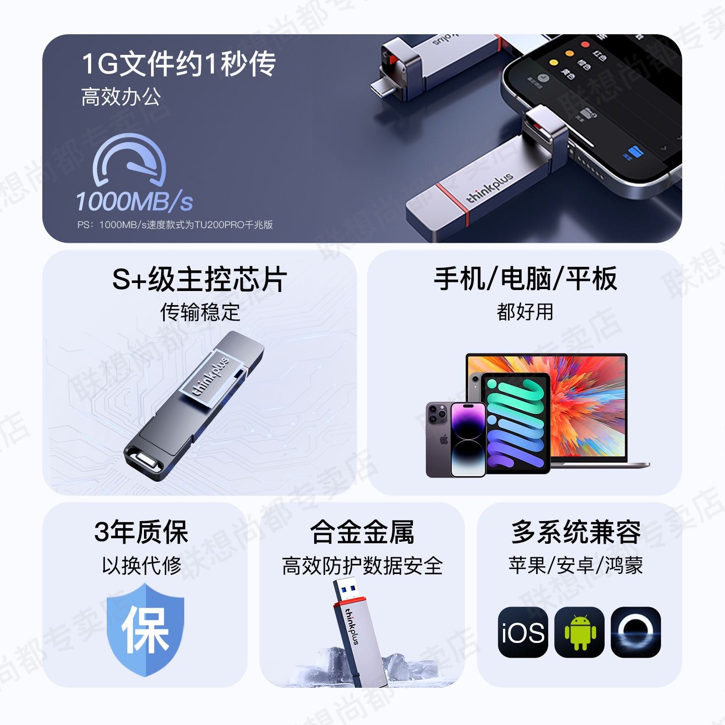 📚 联想2t大容量移动固态u盘typec双接口手机电脑两用高速优盘 正品