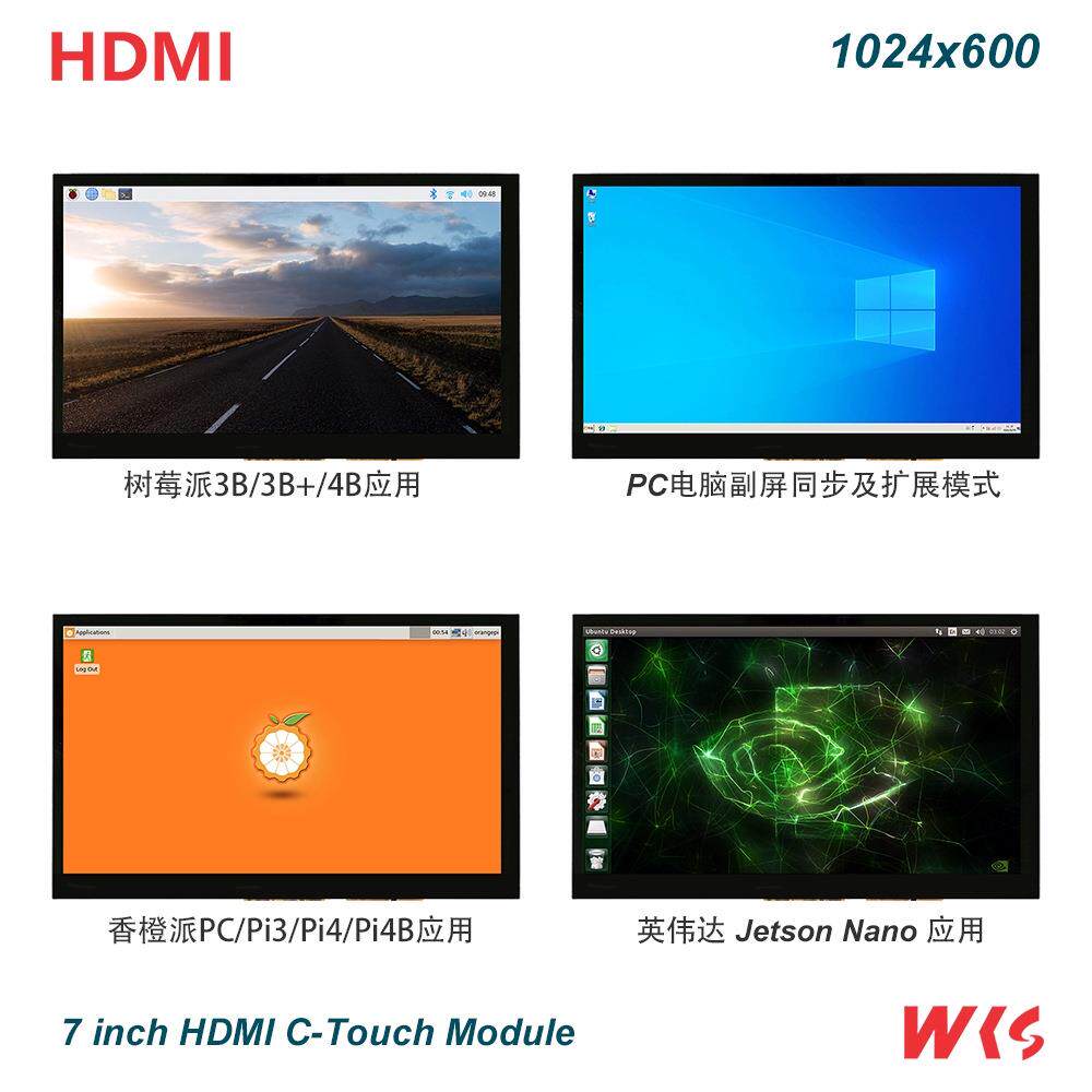 📚 树莓派7寸HDMI电容触摸显示屏1024x600高清电容屏aida64监控副屏