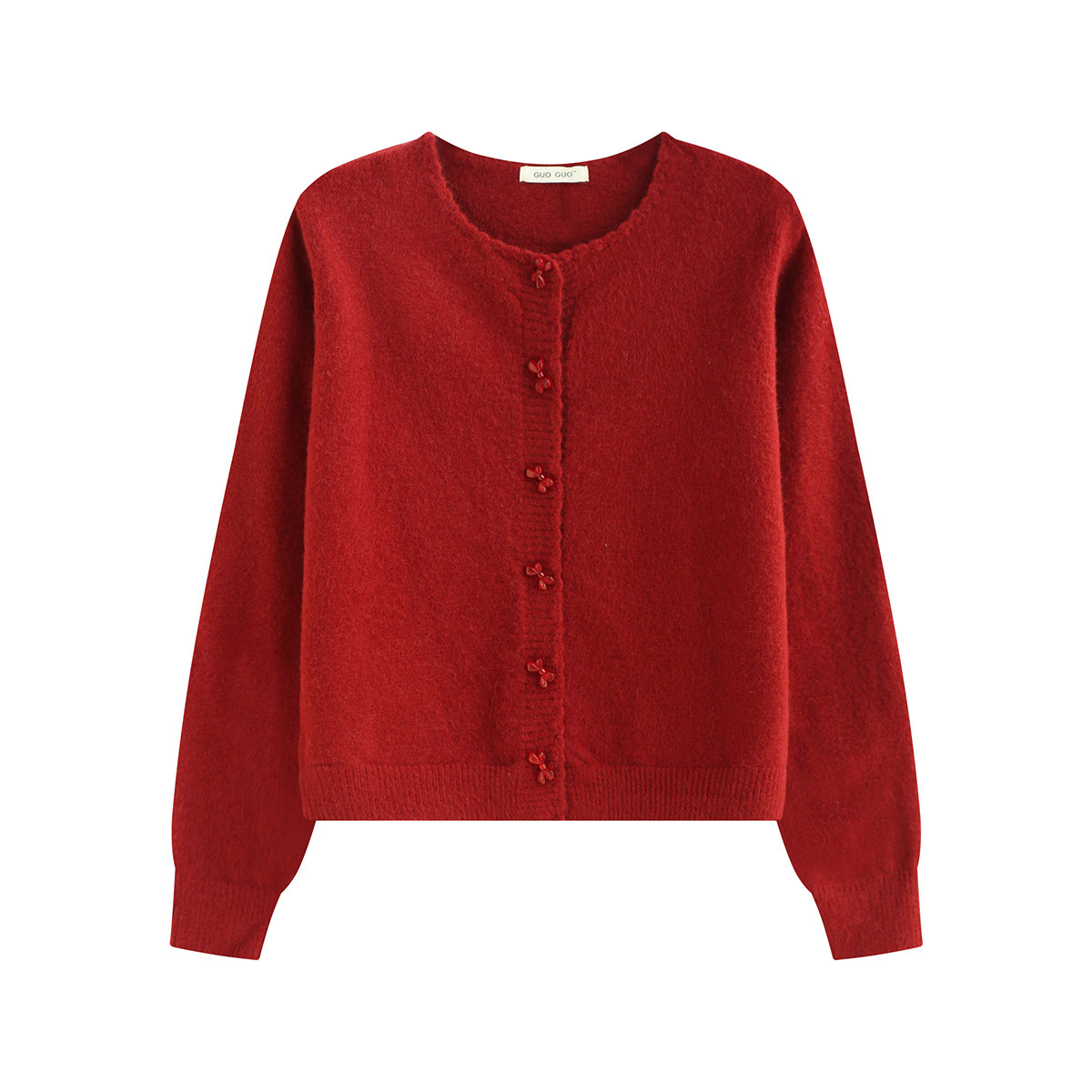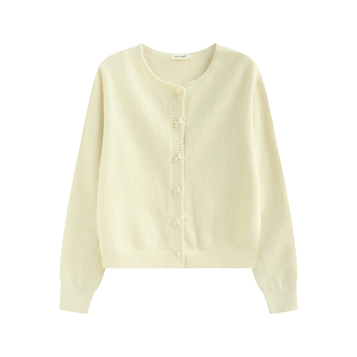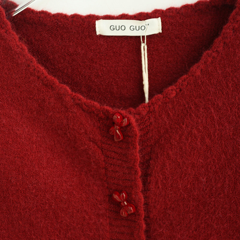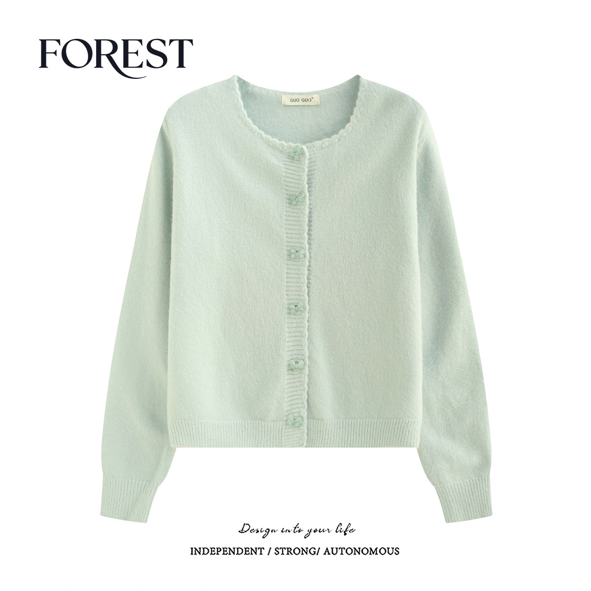📚 拾野森 冬装新款韩版温柔短款手钩花边蝴蝶结扣长袖毛衣开衫外套