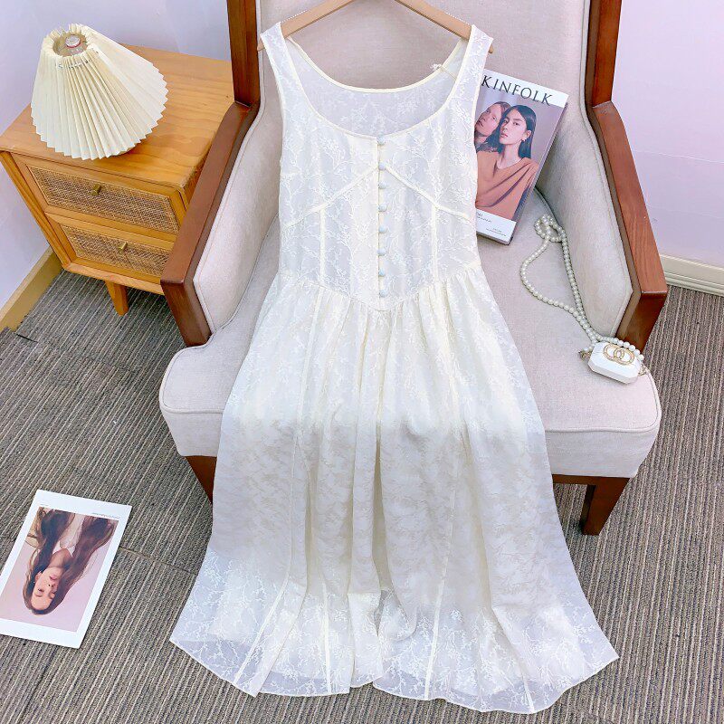 📚 Ginger ale 古典腰线背心连衣裙 豌豆/橘橙/蕾丝白