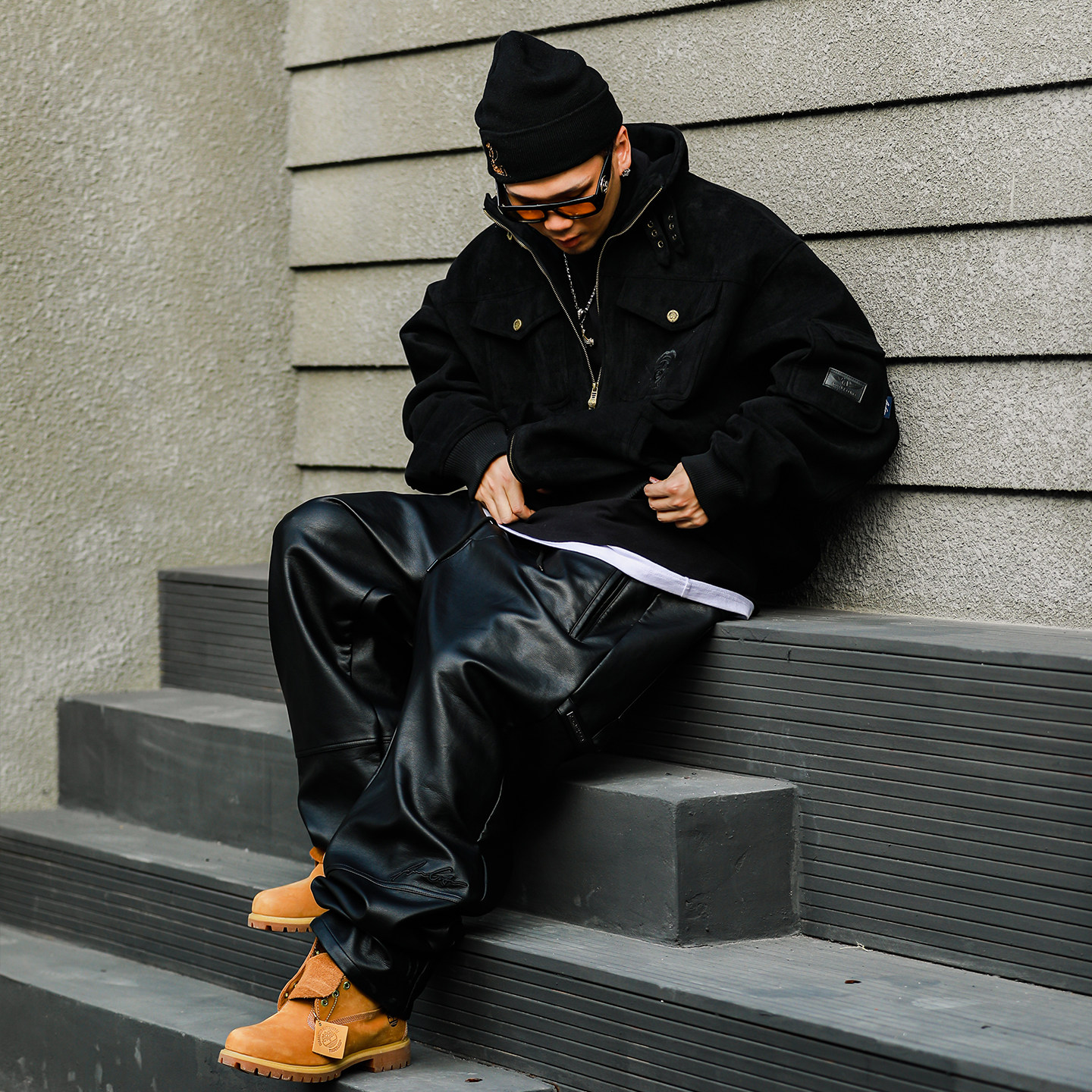 📚 ACUSA吹牛老爹90年代麂皮防风重磅拉链立领绑带夹克宽松休闲外套