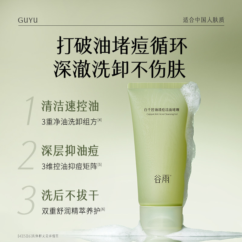 📚 【重磅新品】谷雨白千控油洁面深层清洁保湿祛痘洗面奶洗卸合一
