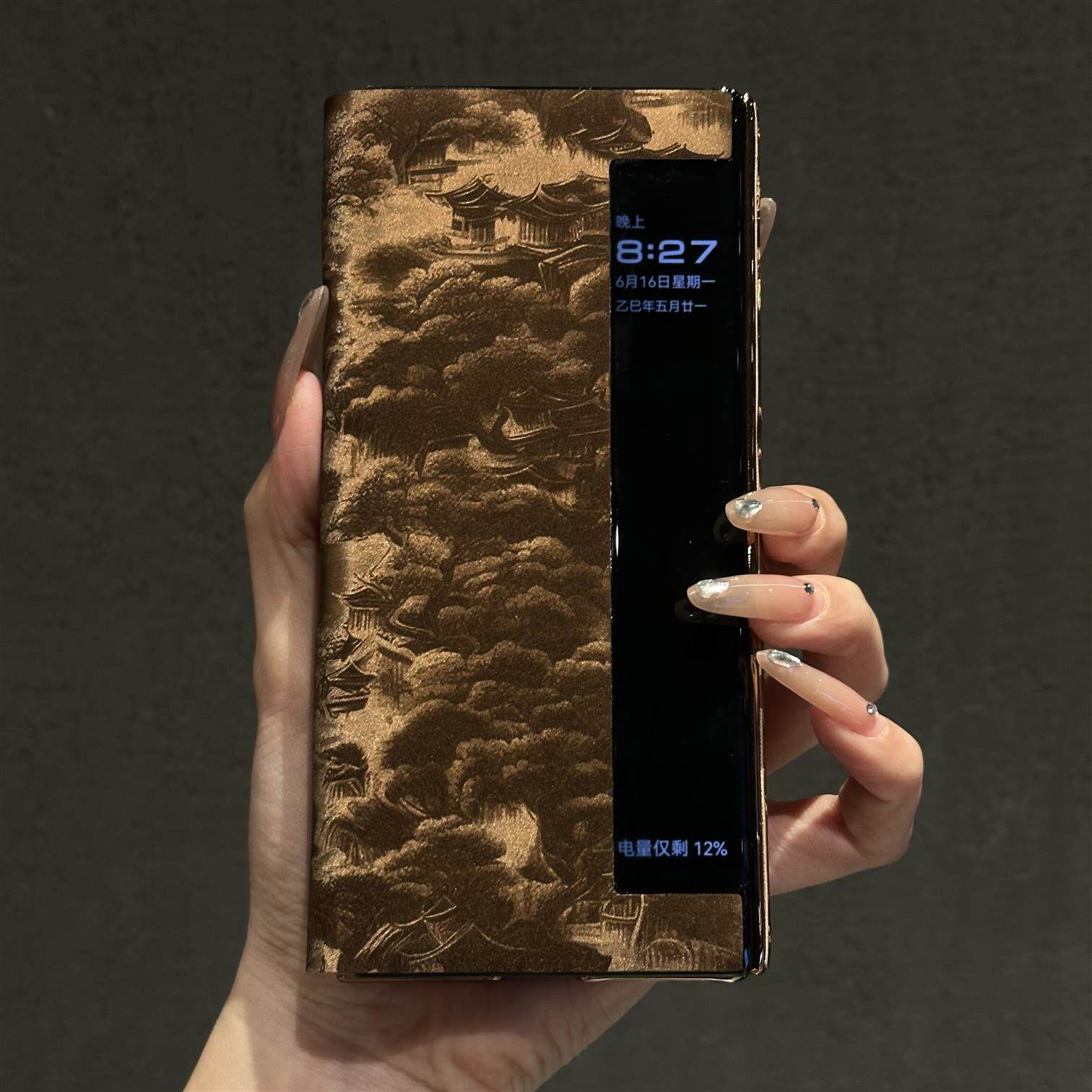 📚 山河图旋转腕带支架适用华为MateXT三折叠手机壳MateXT新款高级x7防摔外壳男女保护套全包边框新款双中轴高端
