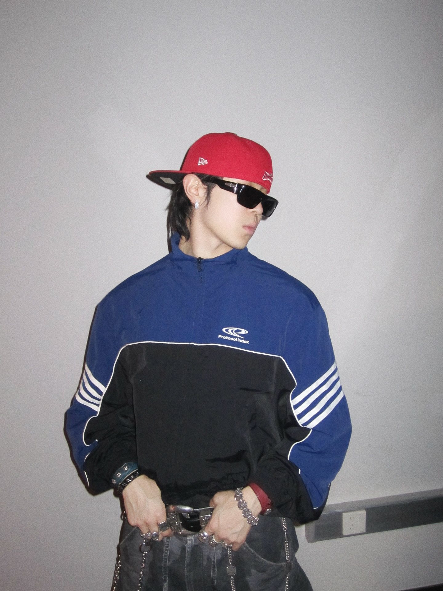 📚 Protocol Index拼色条纹反光运动夹克冲锋衣美式复古休闲拉链外套