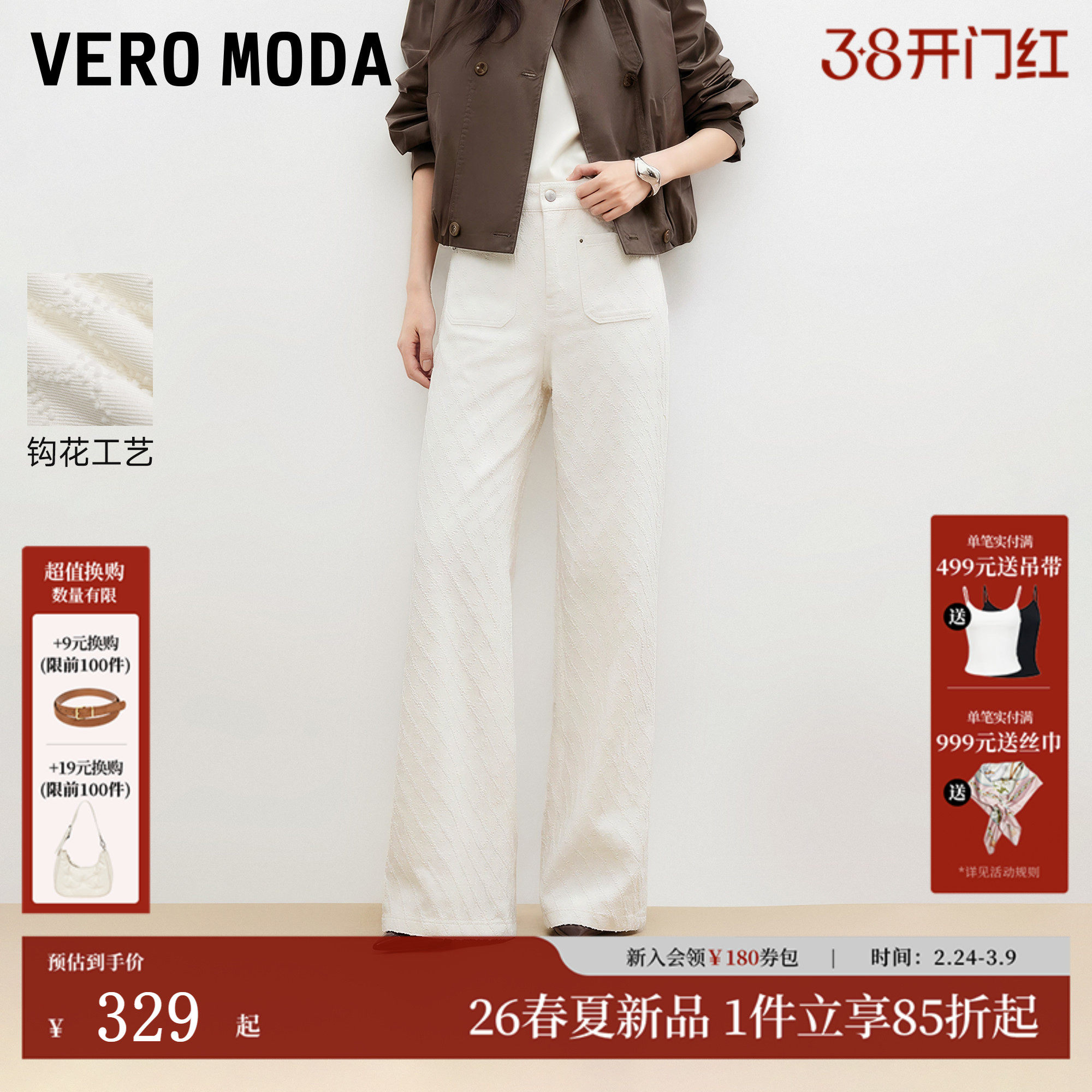 📚 Vero Moda牛仔裤2026春季新款纯棉钩花纯色小香风直筒裤优雅时髦