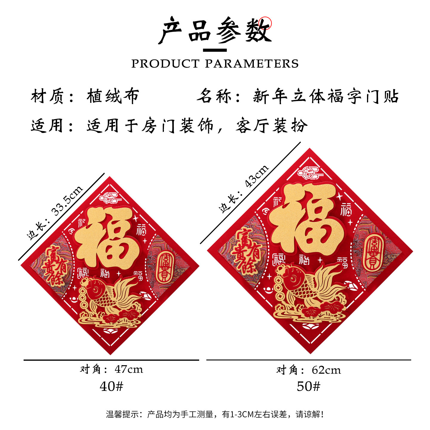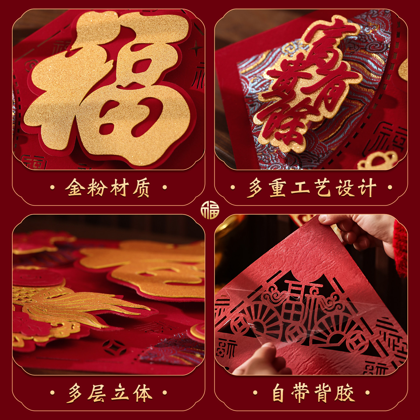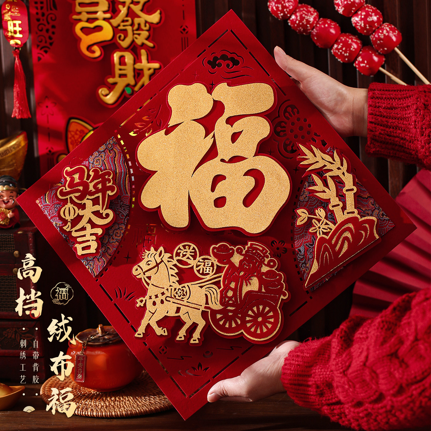 📚 福字门贴2026马年立体绒布墙贴春节过年卧室门高级福贴大门剪纸