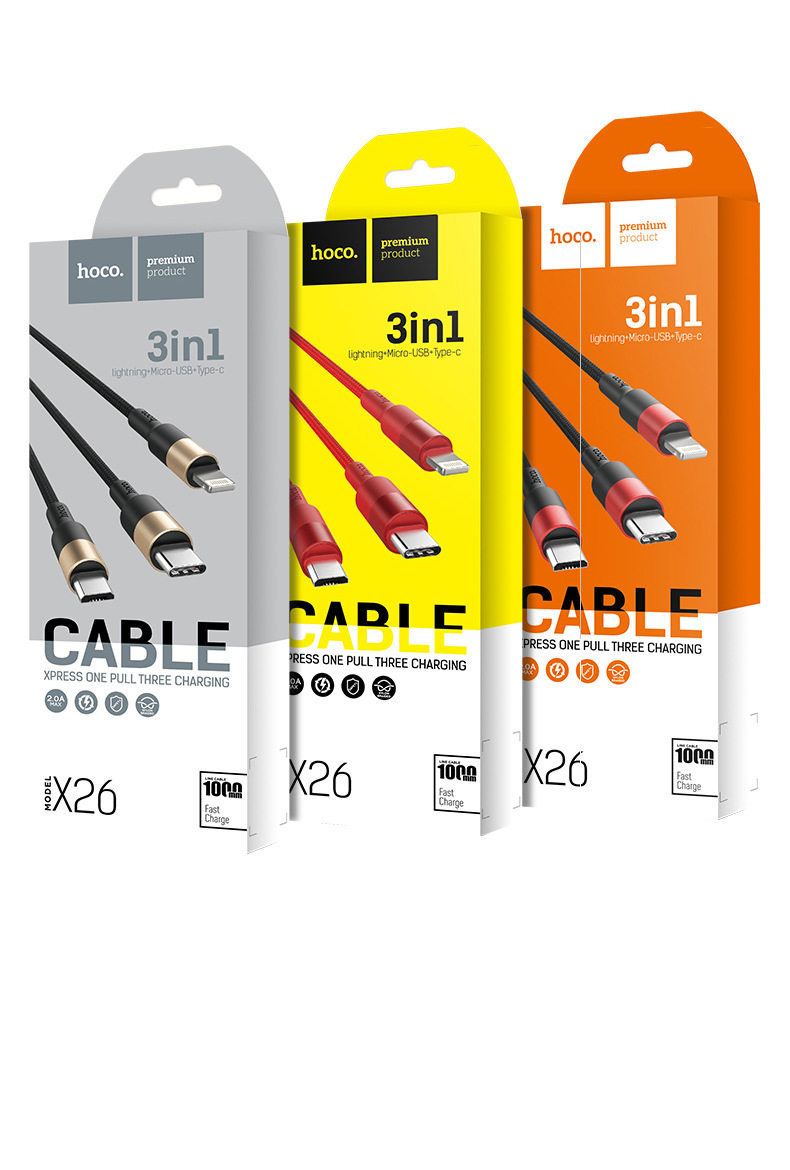 📚 HOCO/浩酷X26速派适用于苹果XS充电线一拖三2A快充线TYPE-C数据线