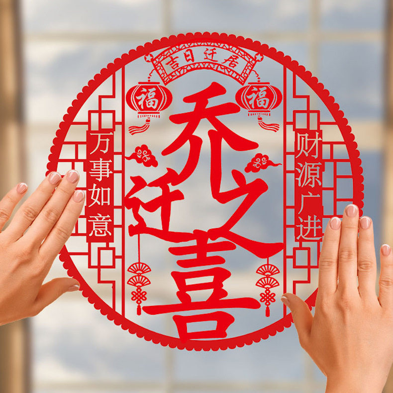 📚 乔迁之喜装饰静电贴窗花玻璃贴新居进宅大吉福字门贴剪纸布置用品
