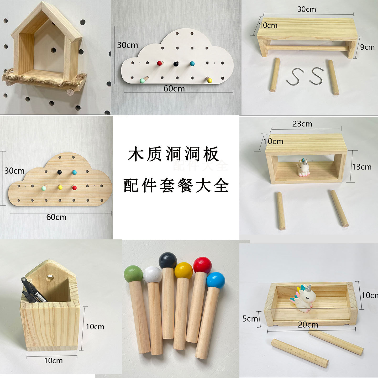 📚 洞洞板配件实木套餐大全 15mm层板木棍火柴棍挂件木质收纳置物架