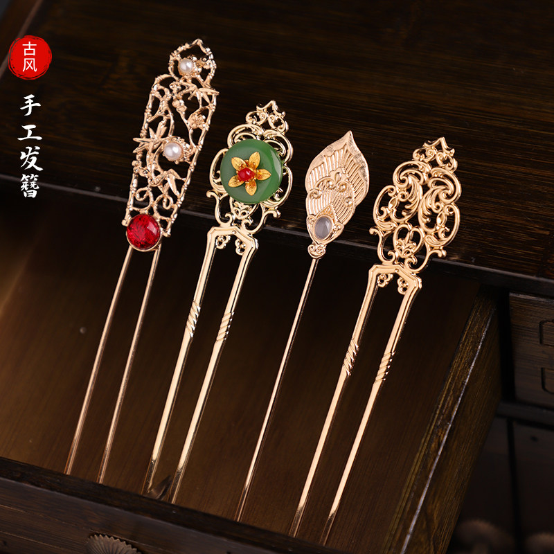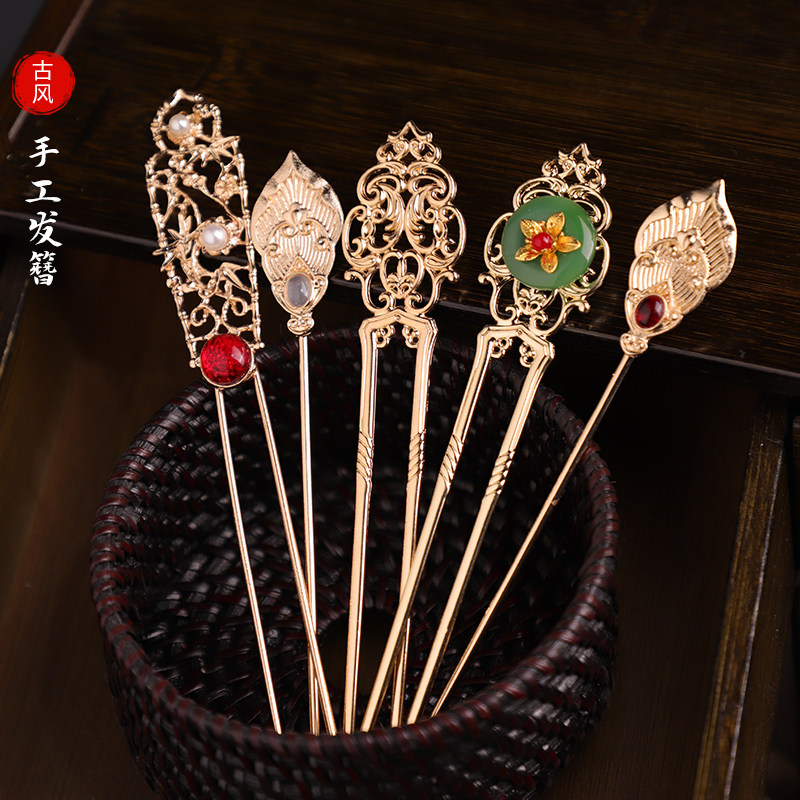📚 汉服头饰女古风简约唐宋明制发冠钗子古典舞演出发饰儿童古装配饰
