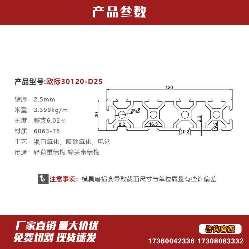 📚 欧标工业铝合金30120 流水线围栏铝型材 雕刻机 自动化重型铝型材