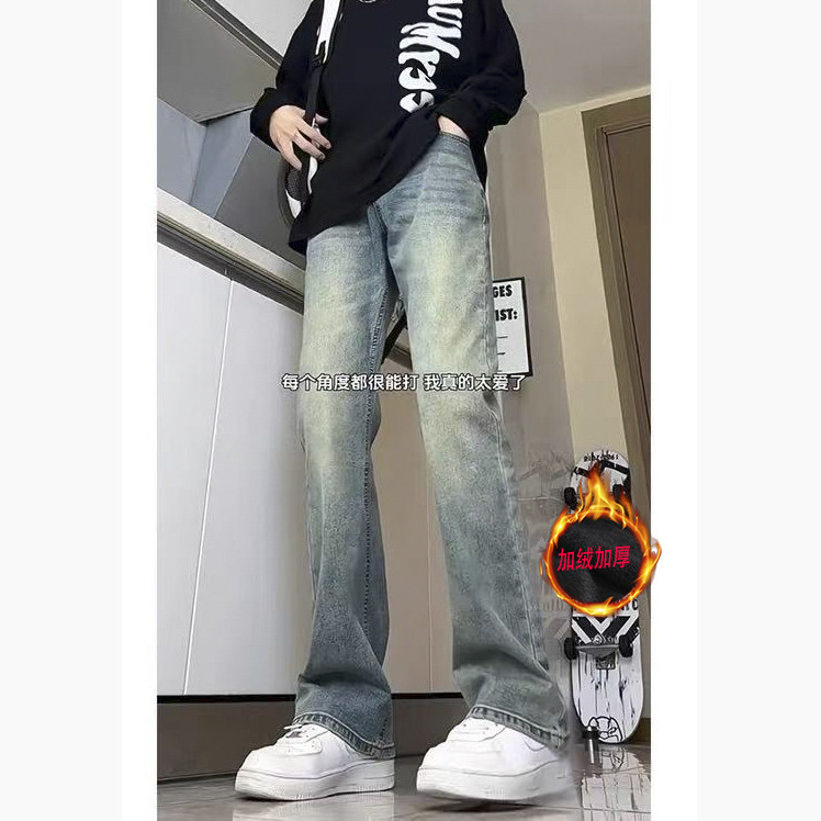 📚 怪兽实验室黑色牛仔裤男秋季美式高街微喇叭弹力牛仔裤弯刀裤潮