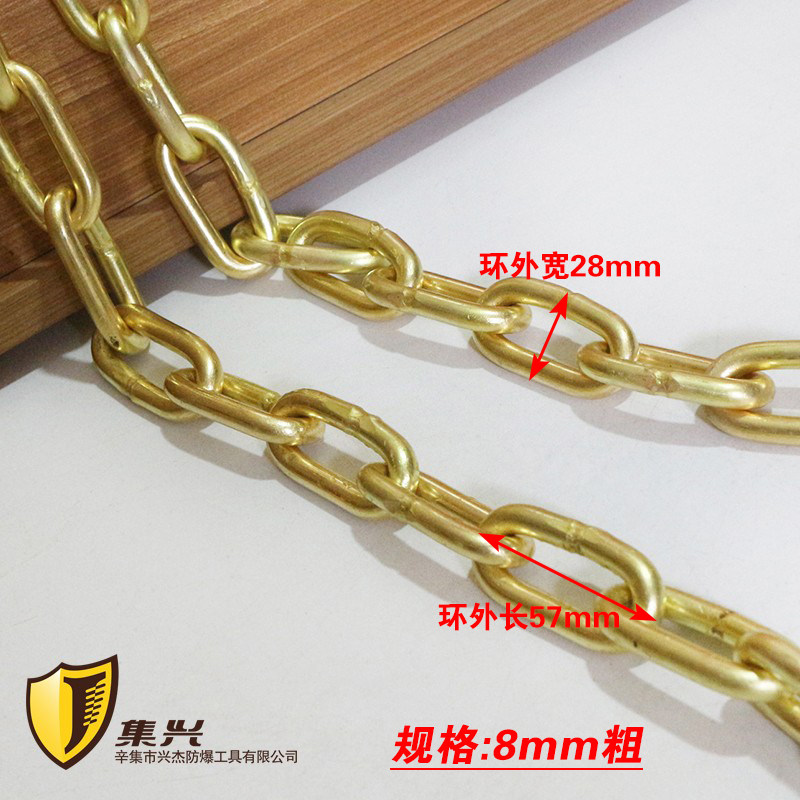 📚 铜链条防爆链条8mm粗实心工业用纯黄铜倒链环隔离带灯具配件