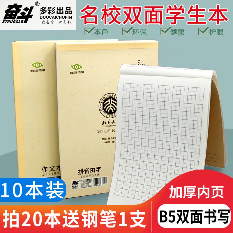 📚 奋斗小学生作业本B5拼音田字格英文本作文本虚宫方格大格算本加厚