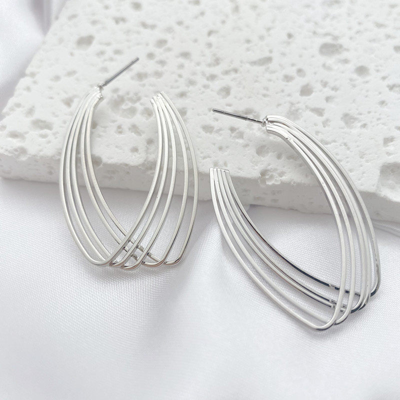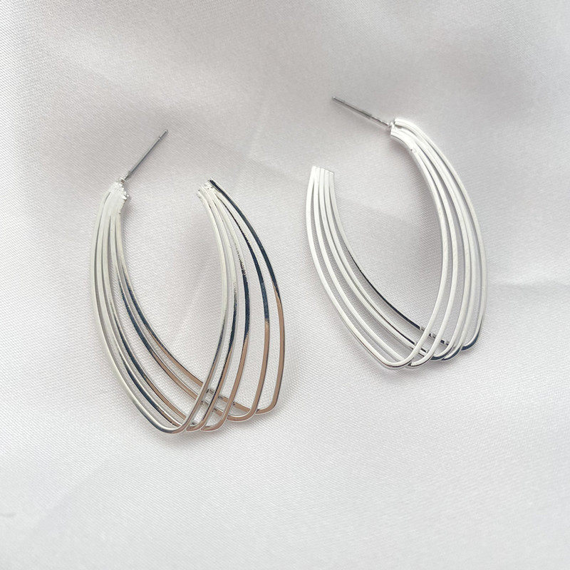 📚 青岛饰品欧美外贸小众轻奢几何重叠气质简约百搭时尚个性金属耳钉