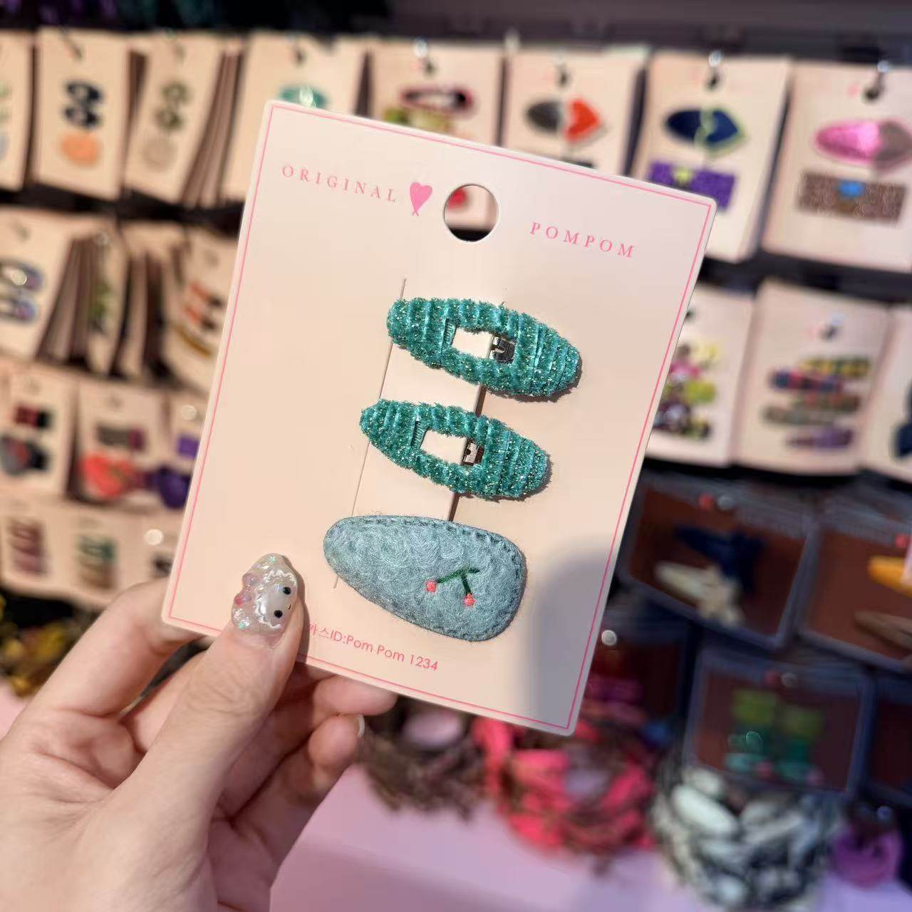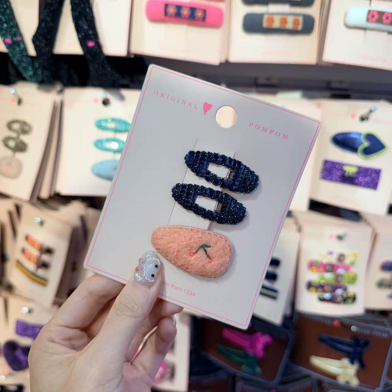 📚 12.3韩国pom新款2025儿童彩色细闪小樱桃边夹发夹