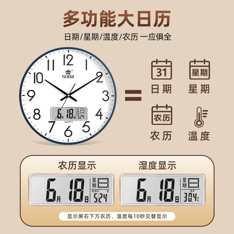 📚 霸王钟表挂钟客厅家用时尚创意静音免打孔挂墙简约大挂表电子时钟