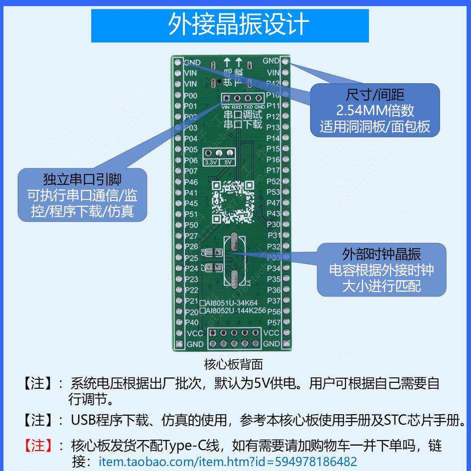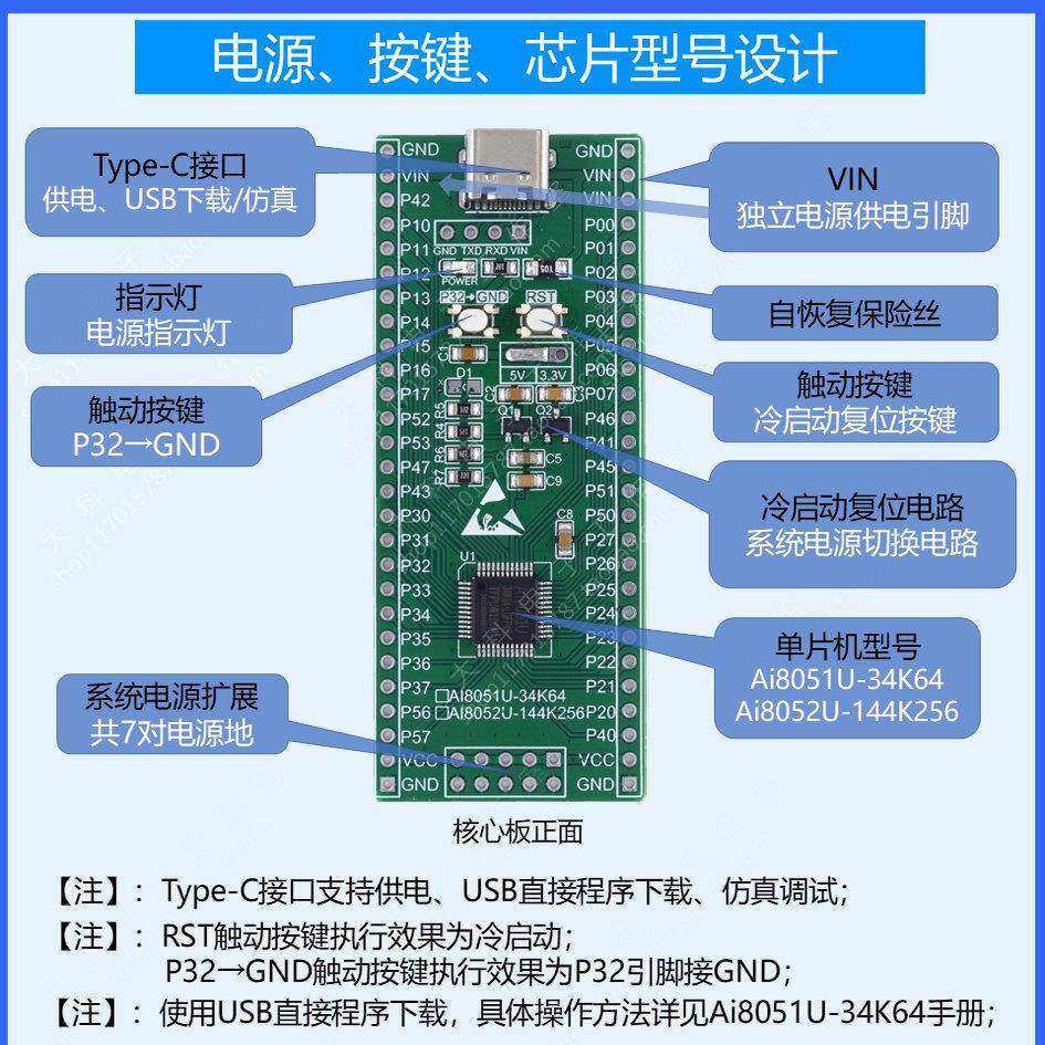 📚 AI8051U-34K64_LQFP48单片机/小系统/核心板/开发板/仿真器