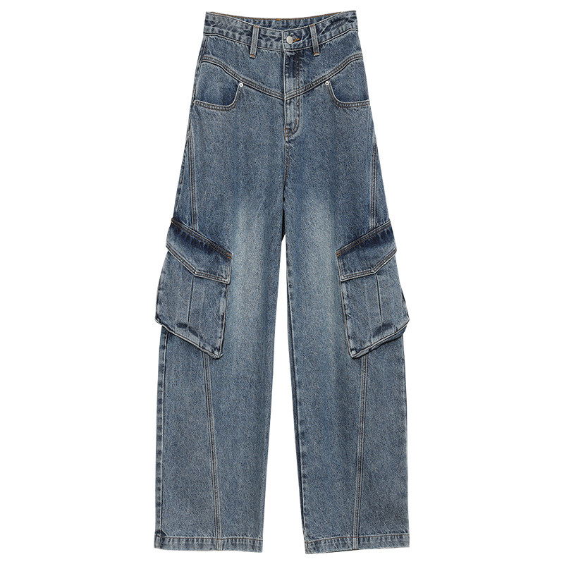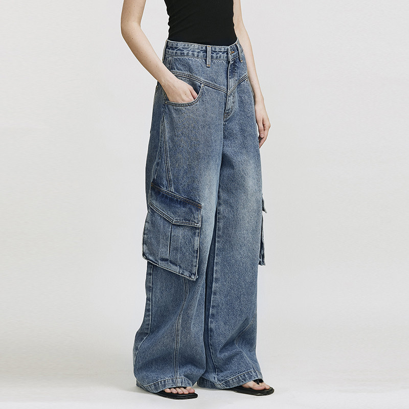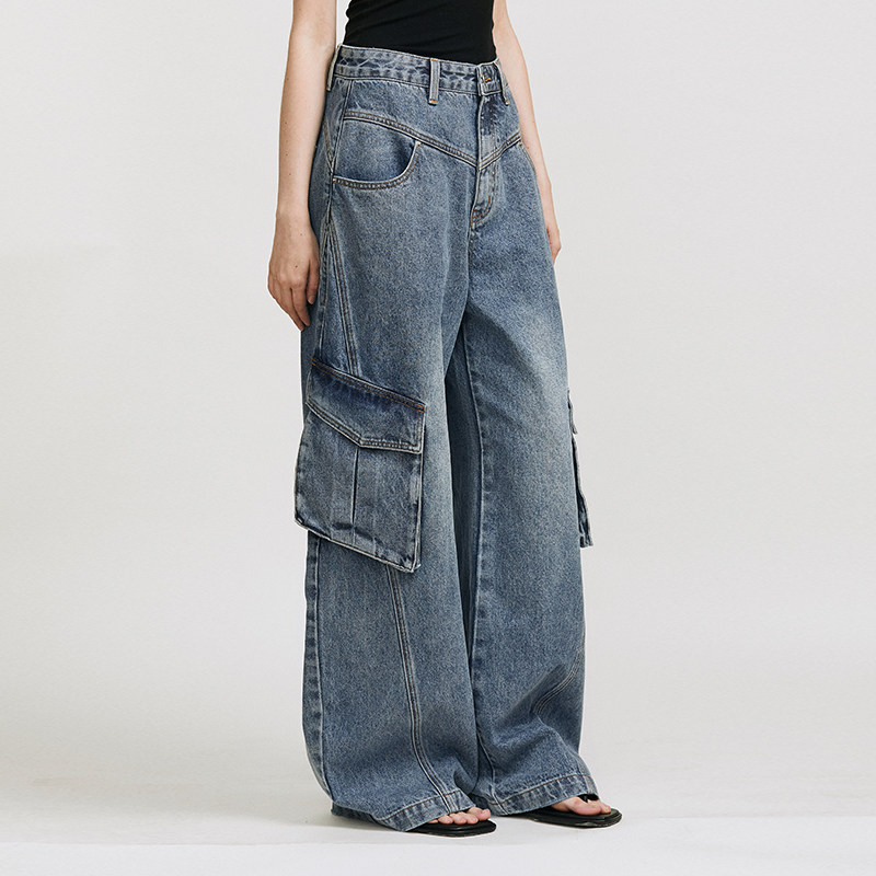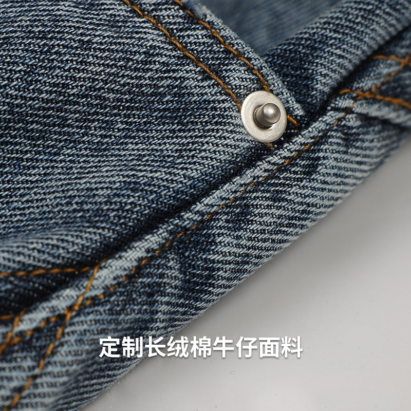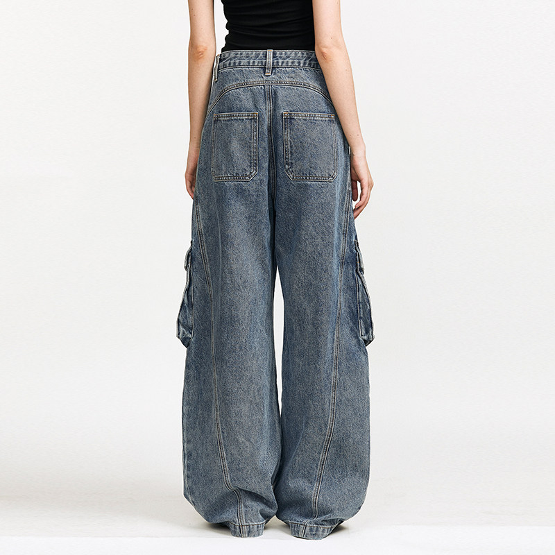 📚 Carolingian松弛B入!重工立体斜线分割长绒棉做旧磨白牛仔工装裤