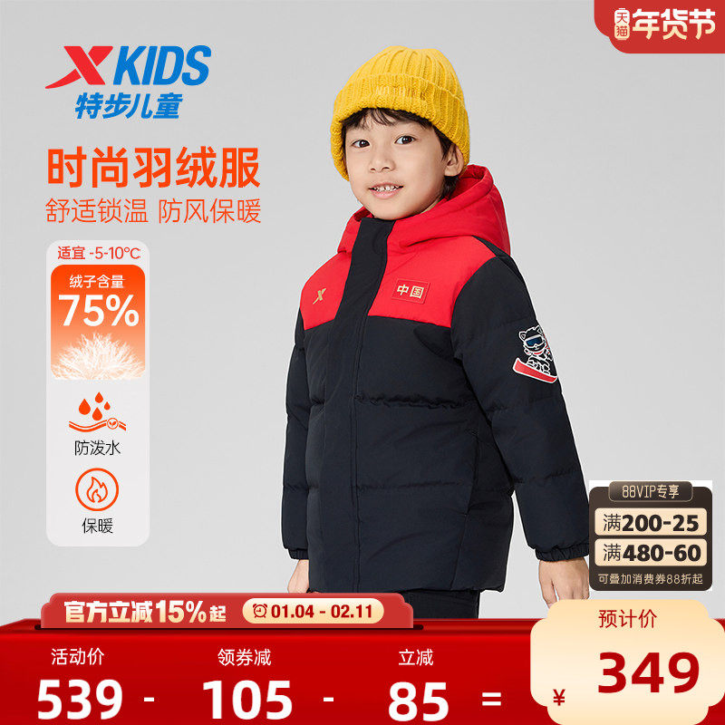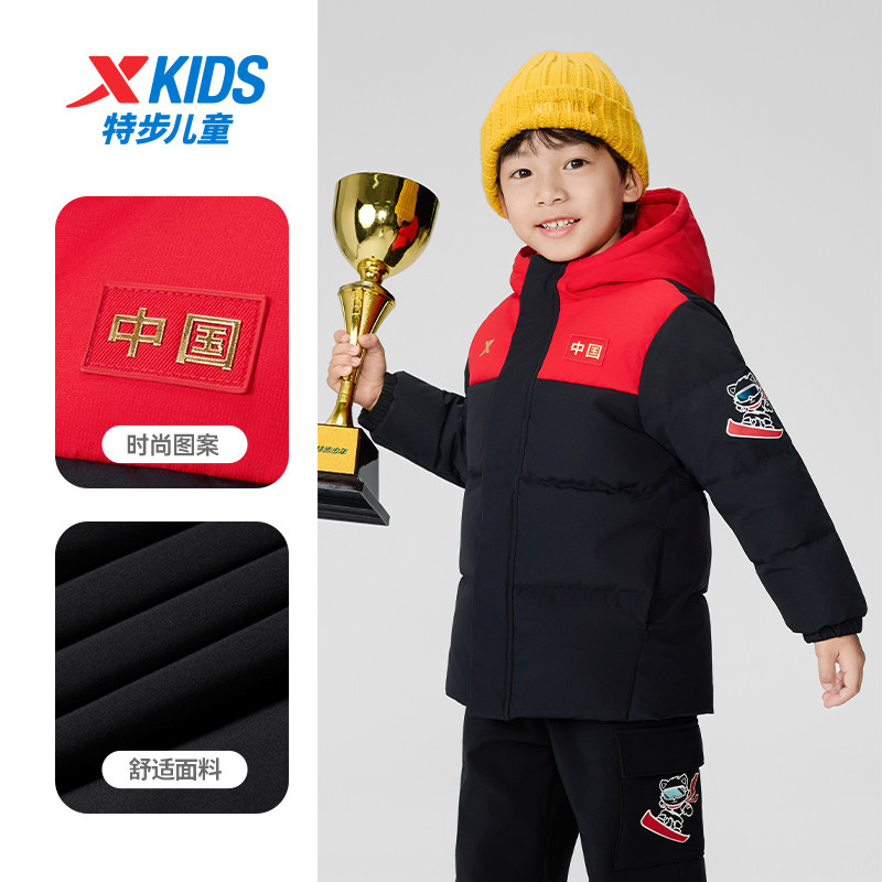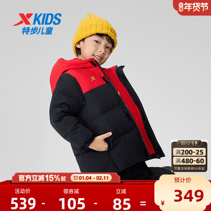 🎉🔥【商场同款】特步童装冬季款男童小童新款儿童运动连帽保暖羽绒服,券后价434元!我找到了温暖的新伙伴!👦👤